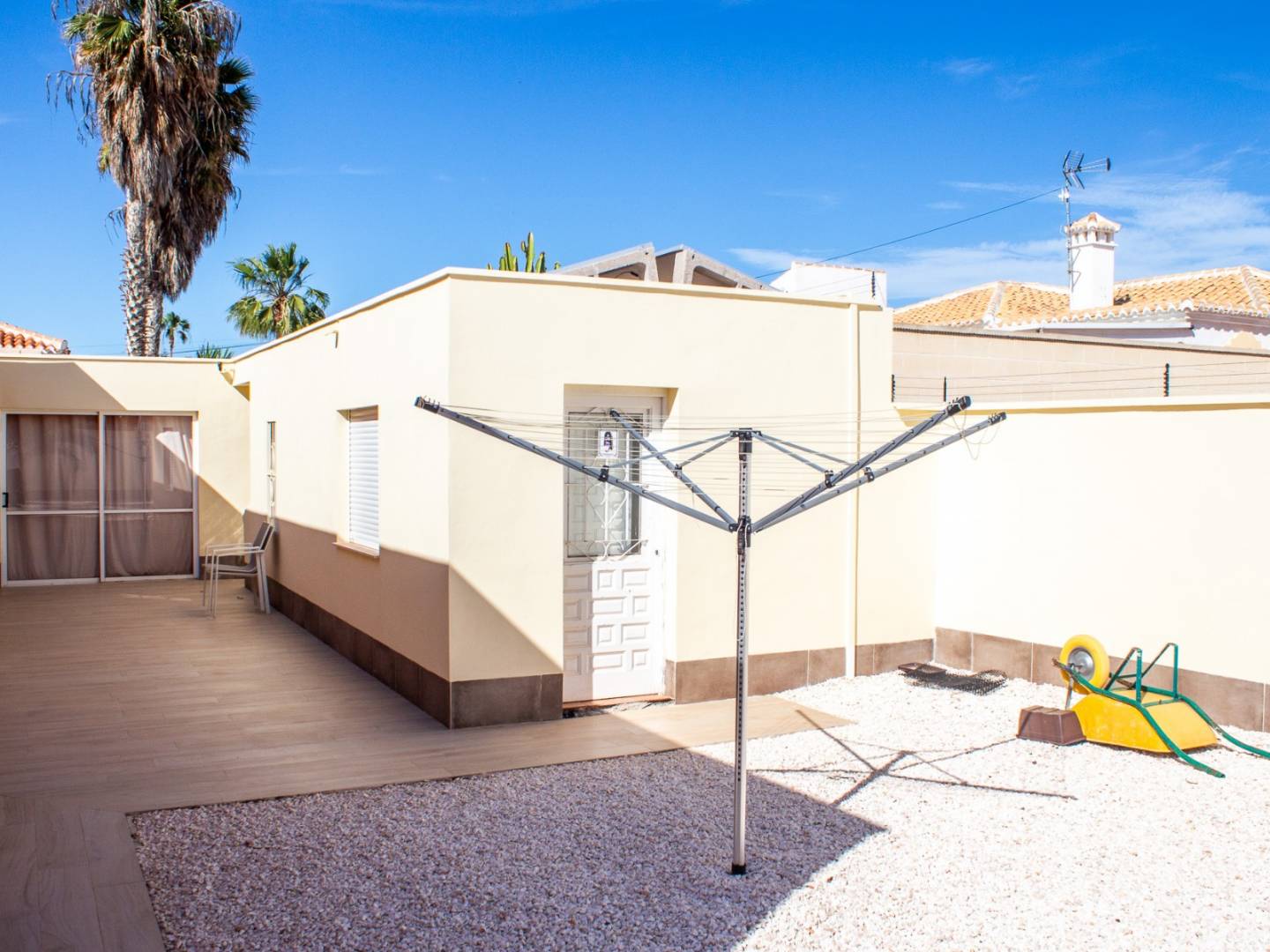 Dit charmante vrijstaande huis ligt op een ruim perceel van 800 m² in de gewilde urbanisatie Torreta Florida , een van de rustigste en meest gevestigde gebieden van Torrevieja.