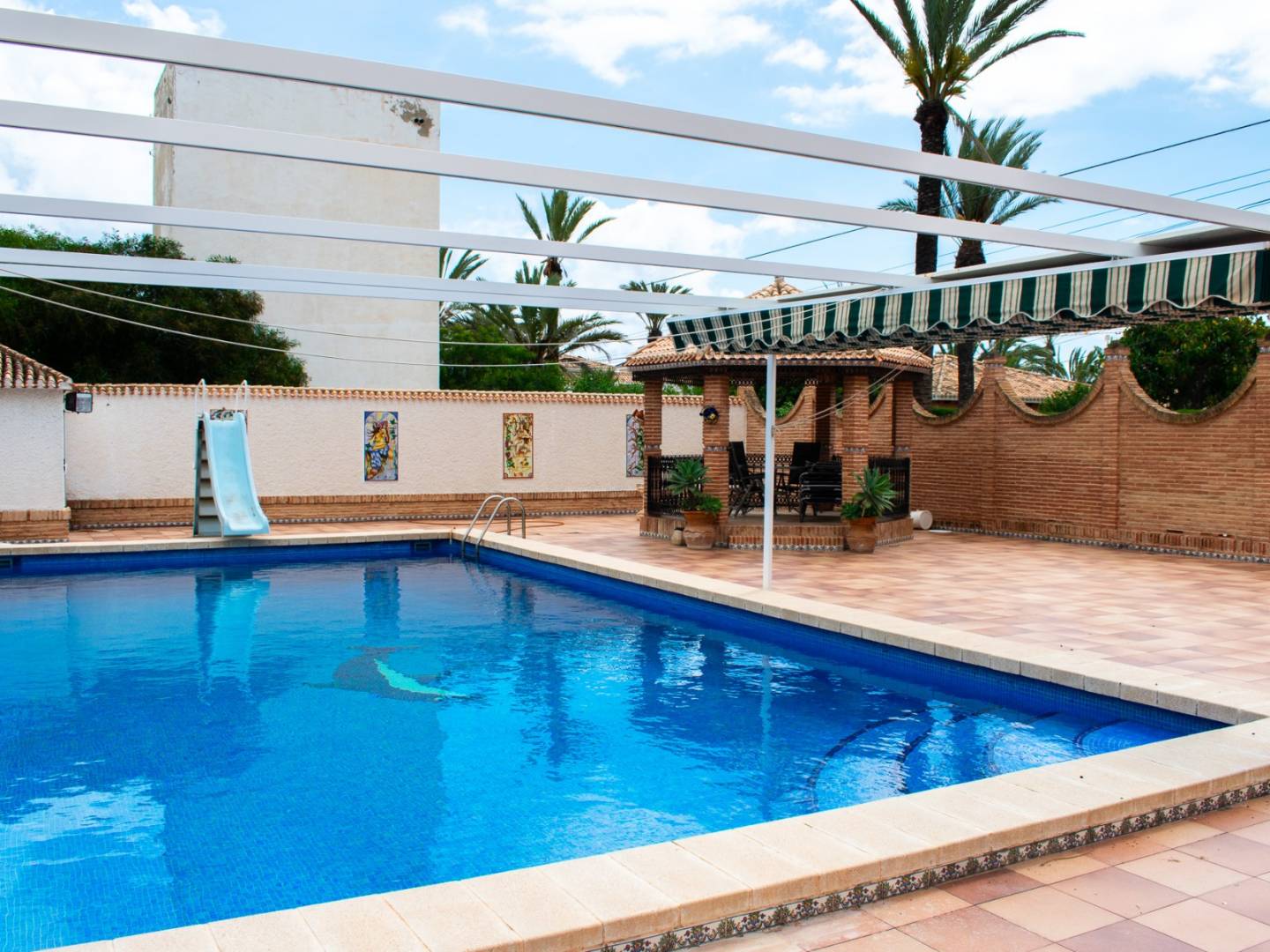 Welkom in deze villa, gelegen in de urbanisatie Cabo Roig , aan de prestigieuze Calle La Quilla in Orihuela Costa (Alicante) , op slechts 100 meter van de zee . Dit indrukwekkende pand onderscheidt zich door zijn royale afmetingen, privacy en toplocatie. Het beschikt over 7 ruime slaapkamers , 4 complete badkamers , een woonkamer met open haard en een aparte keuken , ideaal voor kookliefhebbers. Met 545 m² woonoppervlak en een perceel van 1.500 m² biedt deze residentie alle ruimte voor optimaal comfort. De ligging op het zuiden garandeert uitzonderlijk veel natuurlijk licht gedurende de hele dag en het privézwembad nodigt uit tot ontspanning in een exclusieve omgeving. Verder beschikt de villa over een garage , aangelegde tuinen en hoogwaardige voorzieningen, ontworpen voor een verfijnde mediterrane levensstijl. Een unieke kans om een uitzonderlijk pand te verwerven in een van de meest prestigieuze gebieden van de Costa Blanca .