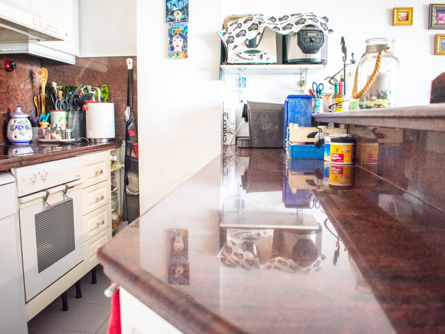 Deze woning beschikt over drie ruime slaapkamers met inbouwkasten , twee elegante en volledig gerenoveerde badkamers (waarvan één en suite ) en een open designkeuken die overgaat in een ruime woonkamer met directe toegang tot het terras . Het absolute hoogtepunt is het indrukwekkende glazen terras van 25 m² , ideaal om het hele jaar door van het uitzicht op zee te genieten. Een elegant glazen gordijn zorgt voor natuurlijk licht en privacy. De entree is versierd met een karakteristieke Mallorcaanse deur , die het huis een vleugje authenticiteit en ingetogen elegantie geeft.