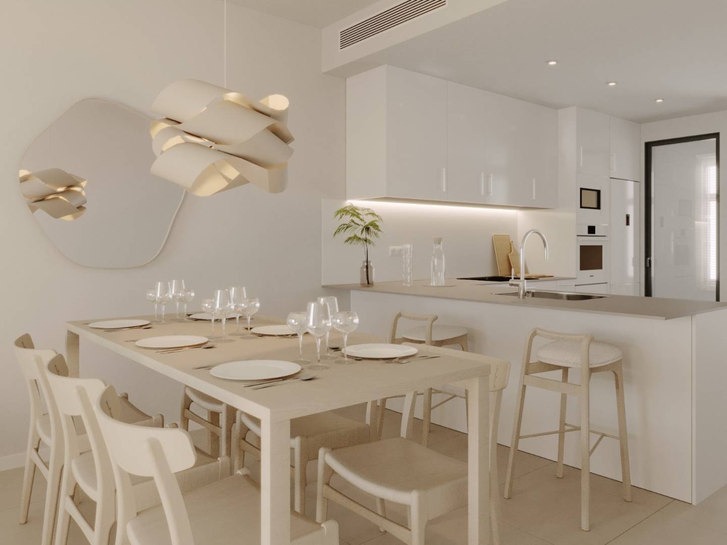 Geniet van het voorrecht om te kiezen tussen ruime terrassen of indrukwekkende solariums in de penthouses, ideaal om te genieten van het mediterrane klimaat. Het complex biedt gemeenschappelijke ruimtes die uw levensstijl verrijken: een zwembad, tuinen, een fitnessruimte en een elegante sociale club.