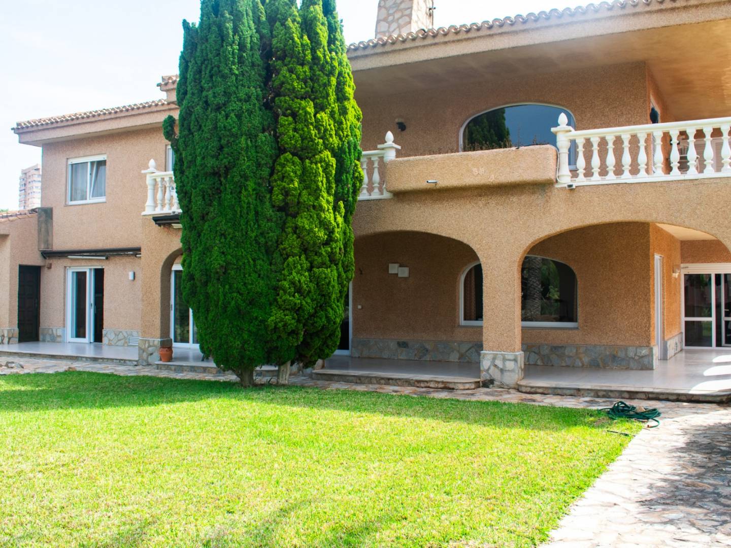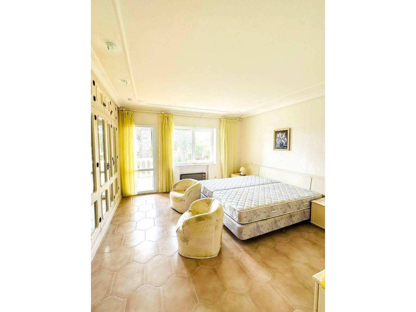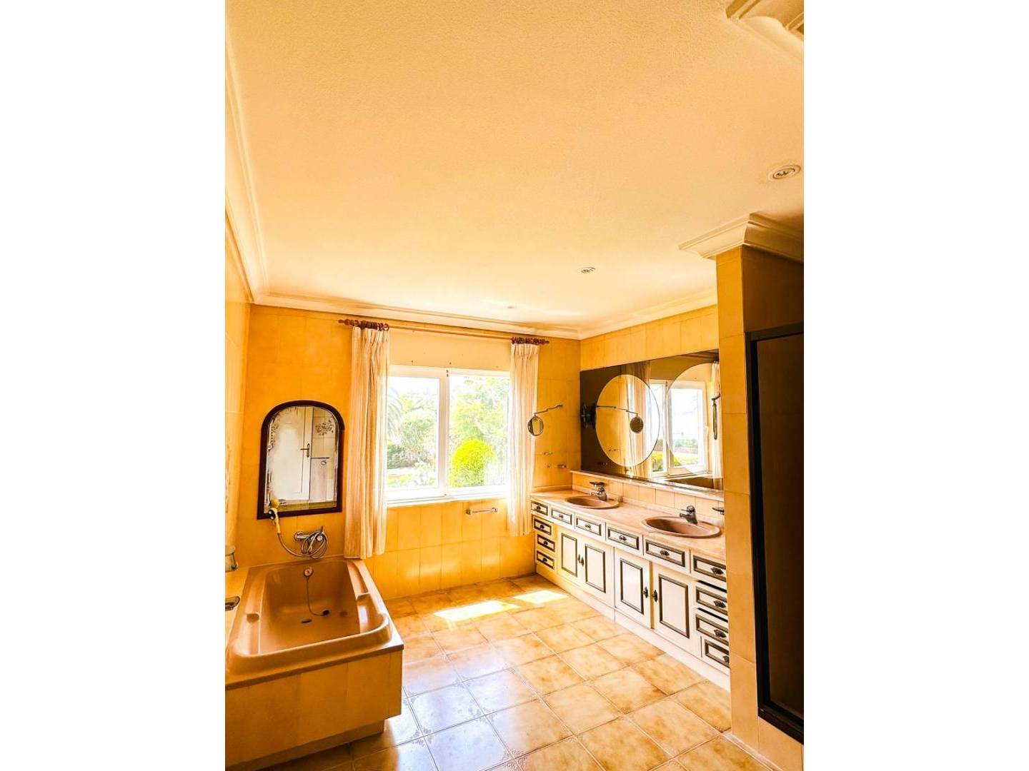 Deze woning biedt drie uitzonderlijk ruime slaapkamers , waarvan twee met een eigen badkamer , evenals drie extra badkamers en twee gastentoiletten. De indeling combineert elegantie en functionaliteit: op de begane grond bevindt zich een open keuken , een ruime woonkamer met open haard en op de bovenverdieping een tweede woonkamer met panoramisch uitzicht op zee en directe toegang tot een terras dat uitnodigt tot ontspanning.