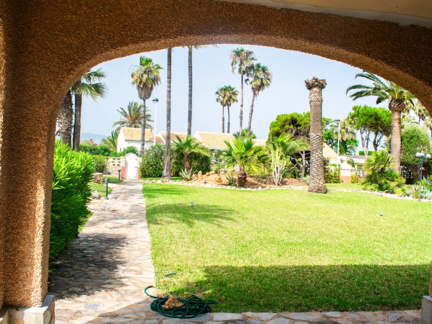 Wij presenteren u een waar pareltje aan zee: een vrijstaande villa aan het strand ten zuidwesten van La Manga aan de gewilde Costa Cálida . Deze unieke woning staat op een indrukwekkend perceel van 1.900 m² , omgeven door weelderige vegetatie, palmbomen en een prachtige privétuin die aanvoelt als een paradijs.