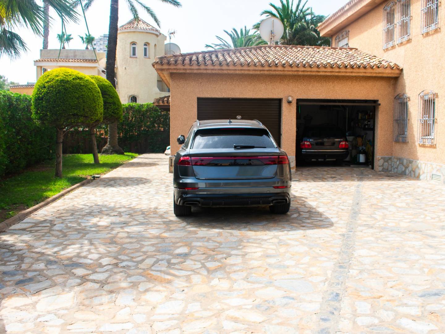 Buiten biedt de woning een terras op de begane grond , een privézwembad omgeven door groen en diverse ontspanningsruimtes. Tevens beschikt de woning over een dubbele garage en een enkele garage voor een boot . Dit maakt de villa een uitzonderlijke optie, zowel als hoofdverblijfplaats als als hoogwaardige investeringspand .