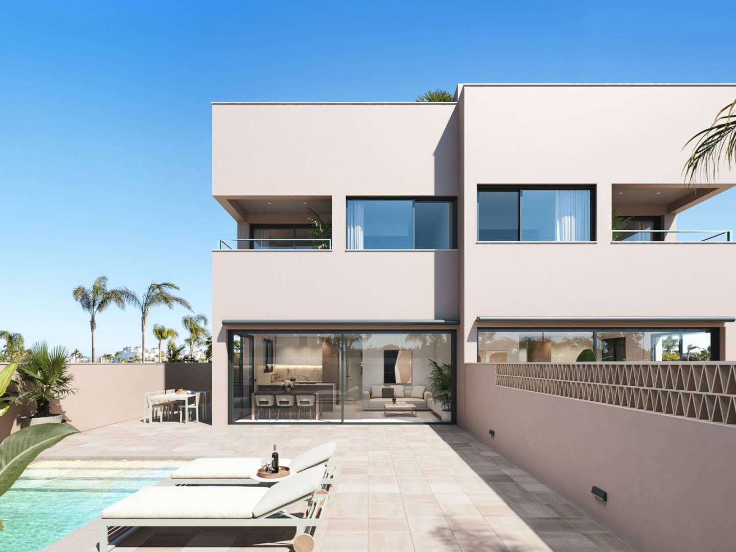 Geniet van het buitenleven op uw eigen zonneterras, ontspan in uw exclusieve zwembad of beleef onvergetelijke momenten op het terras en in de tuin. De woningen beschikken tevens over een eigen parkeerplaats en inbouwkasten, waardoor comfort en functionaliteit gegarandeerd zijn zonder in te leveren op esthetiek. Op slechts enkele meters van de zee en voorzien van alle voorzieningen, zijn deze villa's een solide investering en een ideale mediterrane oase.