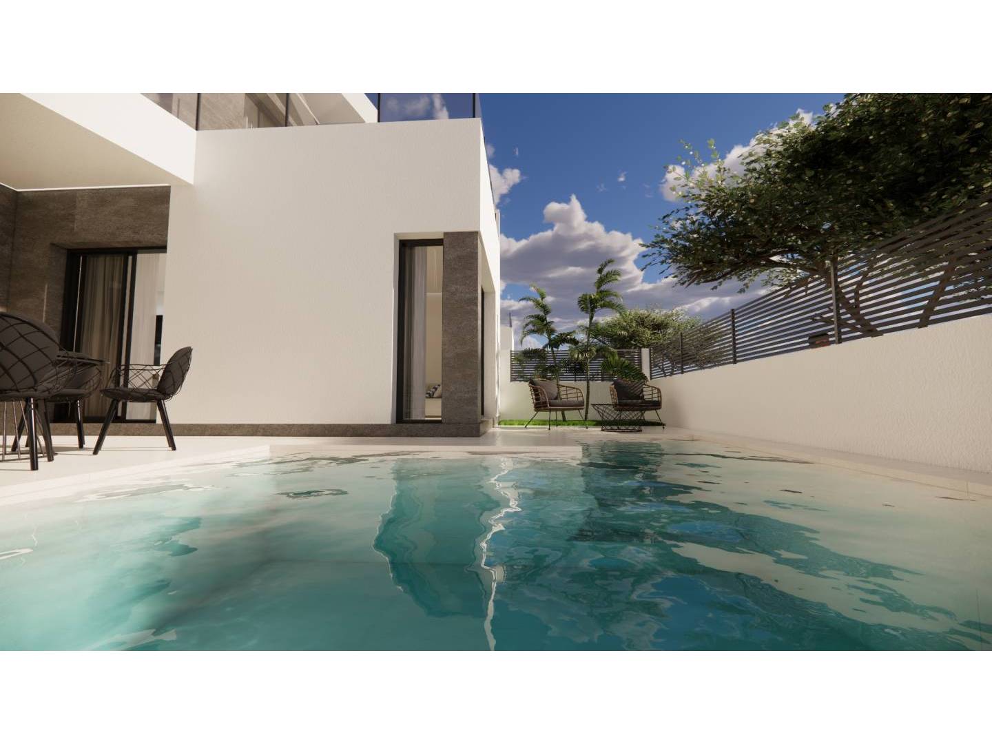 Ontdek een oase van elegantie en comfort in dit elegante wooncomplex met slechts zes herenhuizen in Dolores, Alicante. Elk huis is ontworpen voor maximaal comfort en beschikt over drie slaapkamers, drie badkamers, een volledig uitgeruste open keuken en inbouwkasten die de ruimte optimaal benutten. Geniet van de privacy en rust van uw terras met privézwembad, evenals functionele ruimtes zoals een patio, een galerij en voorgeïnstalleerde airconditioning. Met hoogwaardige afwerking en een veiligheidsdeur combineert deze woning veiligheid, design en functionaliteit. Ontdek de meest exclusieve mediterrane stijl met Six Seconds Properties.