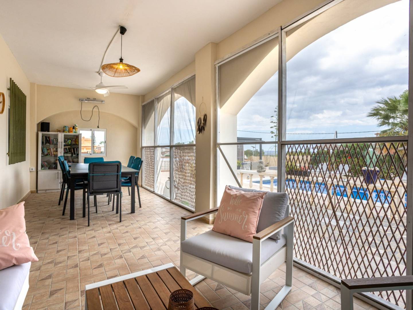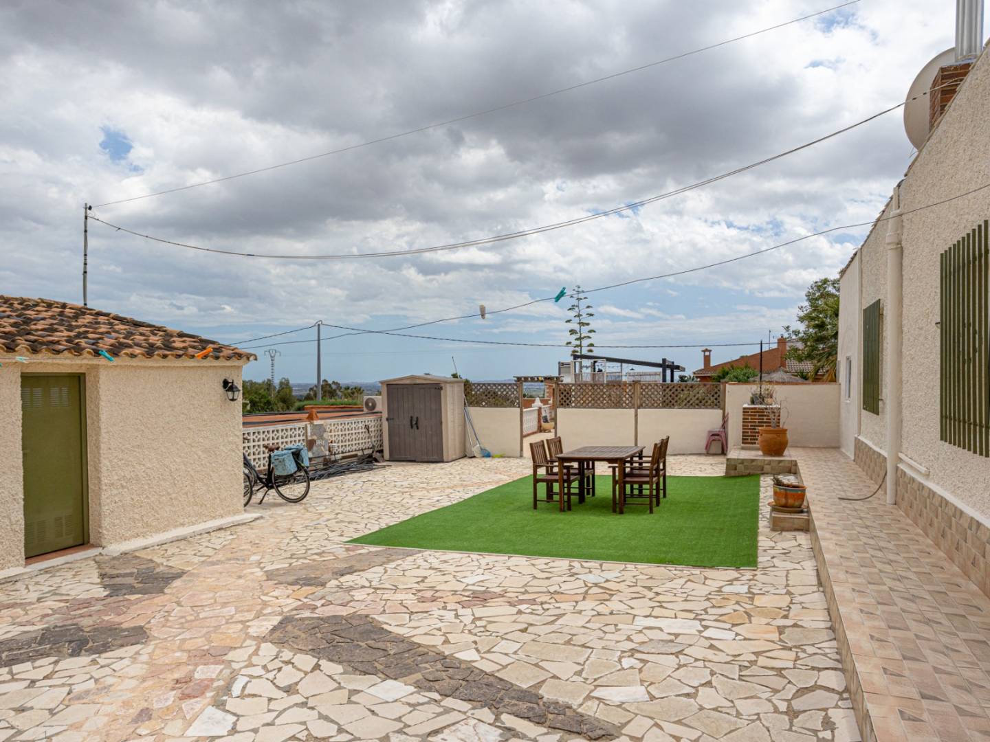 Het hoofdgebouw , met een oppervlakte van 117 m², maakt indruk met zijn ruimtelijkheid en lichtinval. Het beschikt over drie slaapkamers (waarvan één en suite), twee badkamers, een open keuken geïntegreerd in de gezellige woonkamer en een overdekte veranda met een panoramisch uitzicht over meer dan 4000 km² , dat zich uitstrekt tot aan Alicante en de zee. De buitenruimte omvat een goed onderhouden, bosrijke tuin, een verlicht zwembad van 8 x 4 meter, een zonnedouche en ontspanningsruimtes.