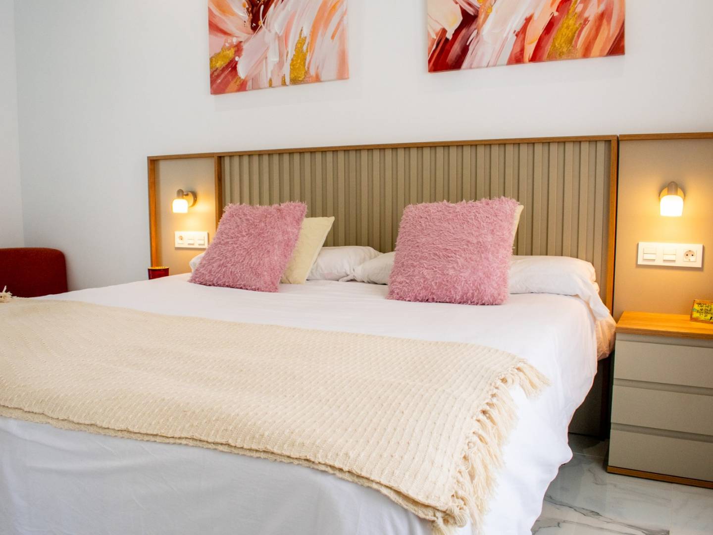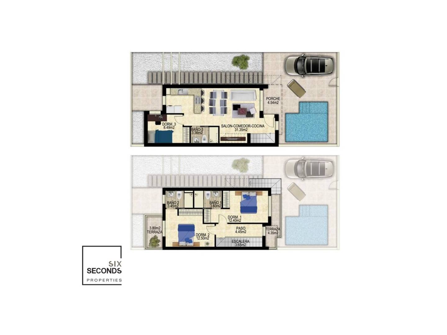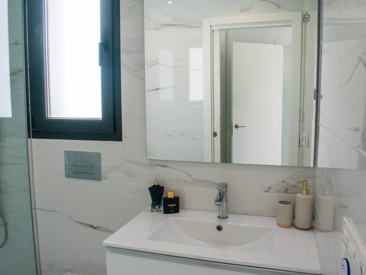 Met een perceeloppervlakte van 116 m² en een bebouwde oppervlakte van 106 m² is de woning verdeeld over twee verdiepingen. Op de begane grond vindt u een lichte woon-eetkamer met open keuken , een tweepersoonsslaapkamer en een complete badkamer , allemaal op één niveau. Boven bevinden zich twee ruime slaapkamers met en-suite badkamers en directe toegang tot een privésolarium met een adembenemend uitzicht op de Roze Lagune van Torrevieja .
