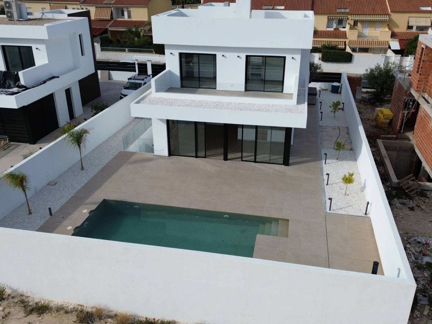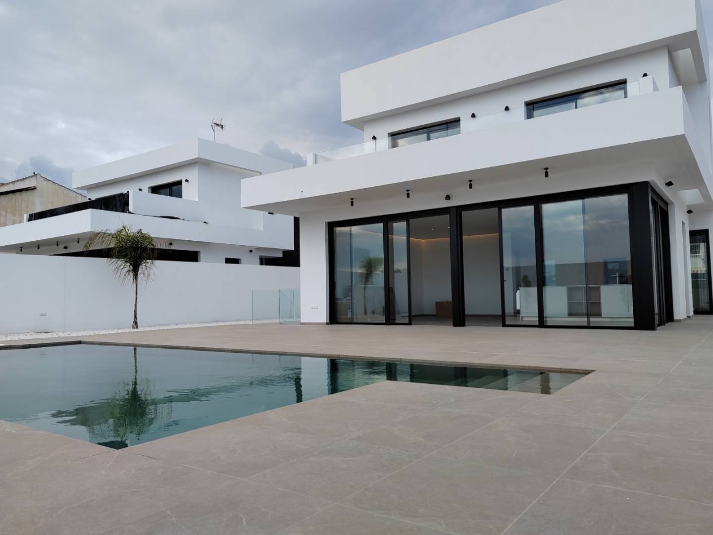 Nieuw gebouwd, verfijnd herenhuis met twee verdiepingen, kelder en privézwembad vlakbij de zee in San Juan Playa, Alicante, Costa Blanca.