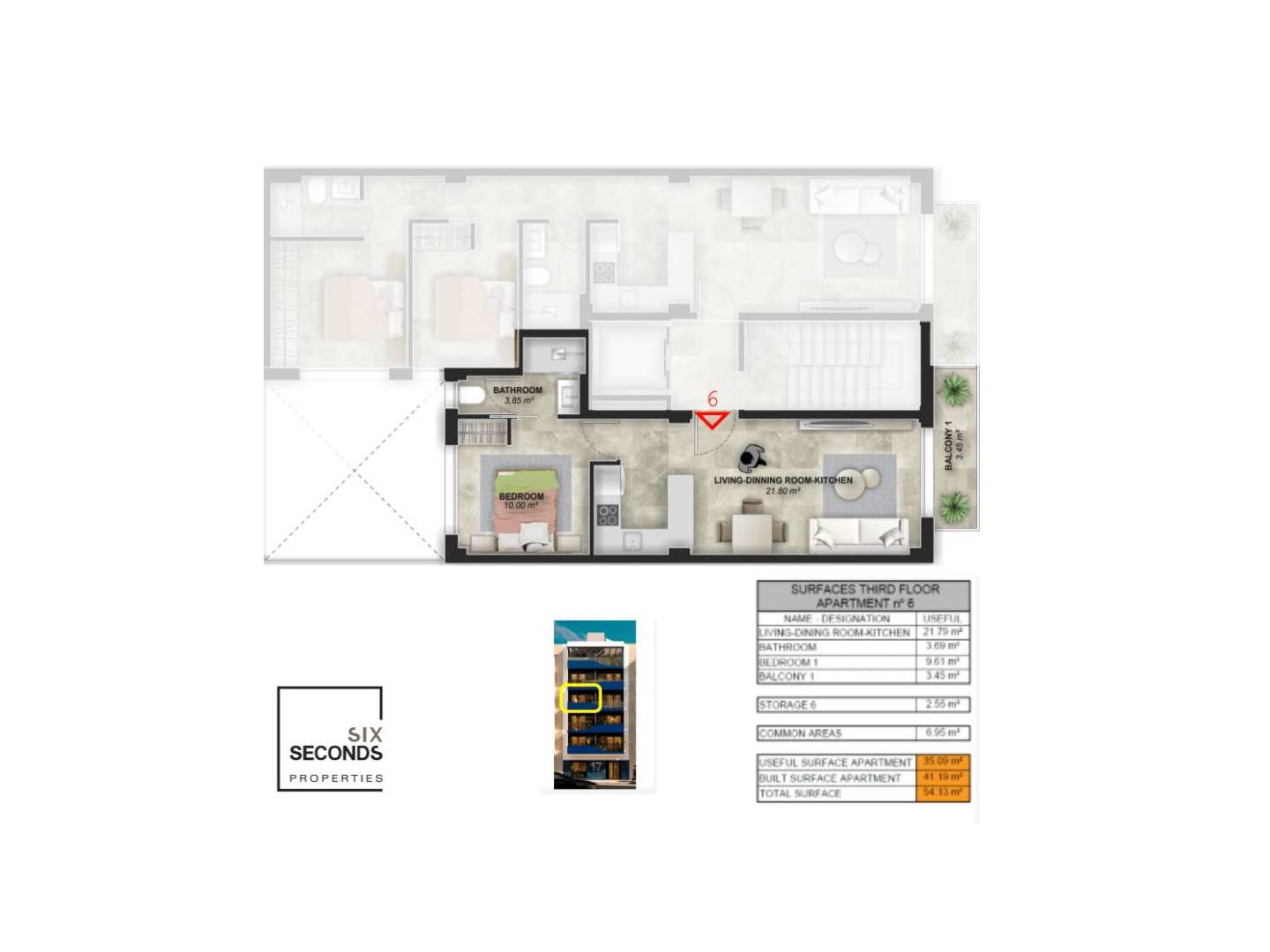 Het complex omvat studio's, appartementen met één slaapkamer en appartementen met twee slaapkamers met één of twee badkamers en is geschikt voor alle behoeften: van mensen die op zoek zijn naar een tweede huis voor vakanties tot mensen die het hele jaar door aan de kust willen wonen . Alle woningen worden volledig afgewerkt en instapklaar opgeleverd, met een zorgvuldig, modern design en hoogwaardige afwerking. Ze beschikken ook over een eigen berging op de begane grond , een praktische oplossing voor extra gemak.