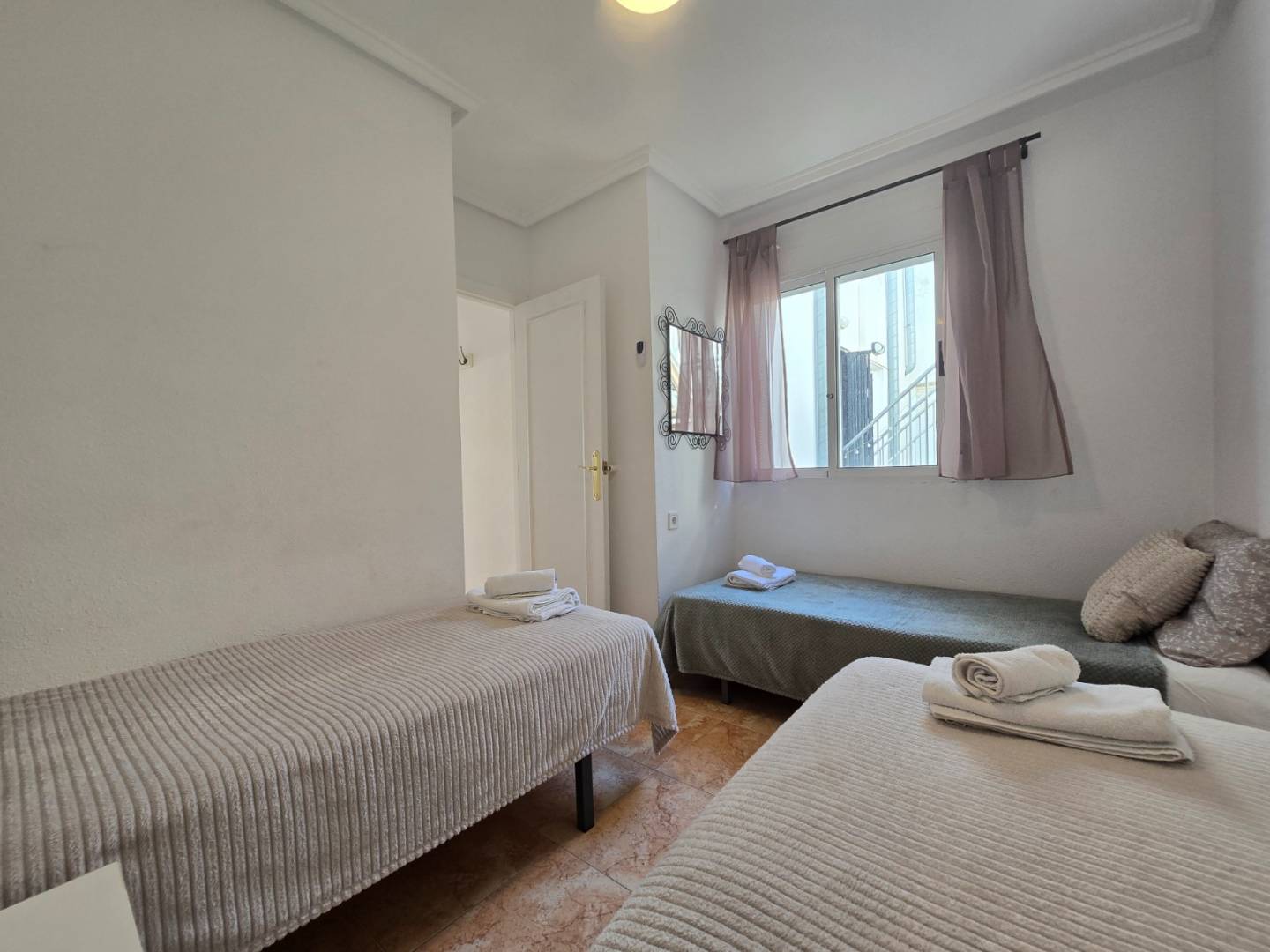 Ontdek dit zonnige appartement gelegen in de rustige wijk El Limonar in Torrevieja. Deze woning is perfect voor wie op zoek is naar comfort, privacy en een aangename leefomgeving aan de Costa Blanca. Het appartement beschikt over 2 ruime slaapkamers, een moderne badkamer en een open keuken die direct in verbinding staat met de gezellige woon- en eetkamer. Dankzij de open indeling en grote raampartijen geniet je hier volop van natuurlijk licht. Eén van de grootste troeven van deze woning is het ruime privé-solarium. Hier kun je in alle rust genieten van de zon, barbecueën, ontspannen met familie en vrienden of simpelweg tot rust komen met uitzicht over de omgeving. De woning maakt deel uit van een gesloten urbanisatie, wat zorgt voor extra veiligheid en privacy. Binnen het complex bevindt zich een gemeenschappelijk zwembad, ideaal voor verkoeling op warme dagen. Deze woning is ideaal als vaste verblijfplaats of vakantieappartement. Gelegen op korte afstand van winkels, bars, restaurants en verschillende voorzieningen. Tevens zijn de mooie zandstranden en het centrum van Torrevieja niet ver weg. Mis deze kans niet en plan vandaag nog een bezichtiging! Suma: 127 euro/jaar Gemeenschapskosten: 224 euro/jaar
