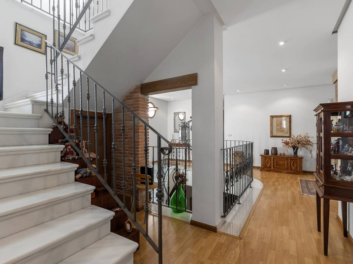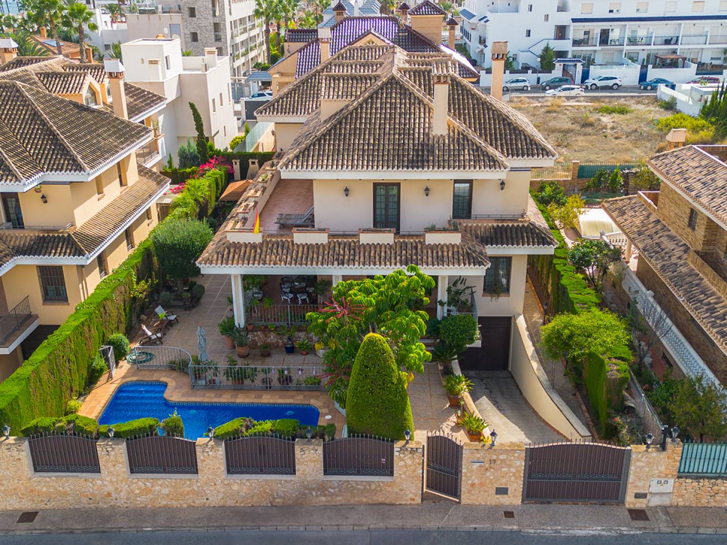 Ontdek deze luxe vrijstaande villa te koop in La Veleta, Torrevieja (Costa Blanca Zuid), een van de meest exclusieve en gewilde gebieden voor internationale kopers die op zoek zijn naar een woning aan zee in Spanje. Deze prachtige woning, gebouwd op een perceel van 700 m², biedt meer dan 700 m² bebouwde oppervlakte verdeeld over verschillende verdiepingen en combineert elegante mediterrane architectuur met het comfort van een moderne woning. De buitenkant is voorzien van traditionele pannendaken, houten balken en ruime terrassen omgeven door weelderig groen. Op de begane grond vindt u een lichte woonkamer met open haard, een elegante eetkamer, een charmante muziekkamer en een volledig uitgeruste keuken, afgewerkt met natuurlijk hout en graniet. Het interieur is warm en uitnodigend, met handgemaakte keramische vloeren, smeedwerk en overvloedig natuurlijk licht. Boven beschikt de villa over ruime, zonnige slaapkamers, waaronder een master suite met eigen badkamer en terras. De zolderverdieping biedt een veelzijdige open ruimte, perfect als kantoor of recreatieruimte. Buiten beschikt de woning over een privézwembad, overdekte terrassen, een ingebouwde barbecue en houtoven, en een prachtig aangelegde mediterrane tuin. In de kelder vindt u een ruime garage voor meerdere voertuigen, bergruimte en een bijkeuken. Gelegen in de prestigieuze woonwijk La Veleta, geniet deze woning van rust, privacy en de nabijheid van de zee, op slechts een paar minuten van de beste stranden van Torrevieja, internationale scholen, supermarkten en restaurants. Een perfecte kans voor wie op zoek is naar een luxe villa in Spanje, ideaal als permanente woning, vakantiehuis of exclusieve investering aan de Costa Blanca. Trefwoorden: luxe villa te koop in La Veleta, villa te koop in Torrevieja, onroerend goed te koop aan de Costa Blanca, Spaanse villa vlakbij zee, vrijstaande villa met privézwembad, villa kopen in Spanje.