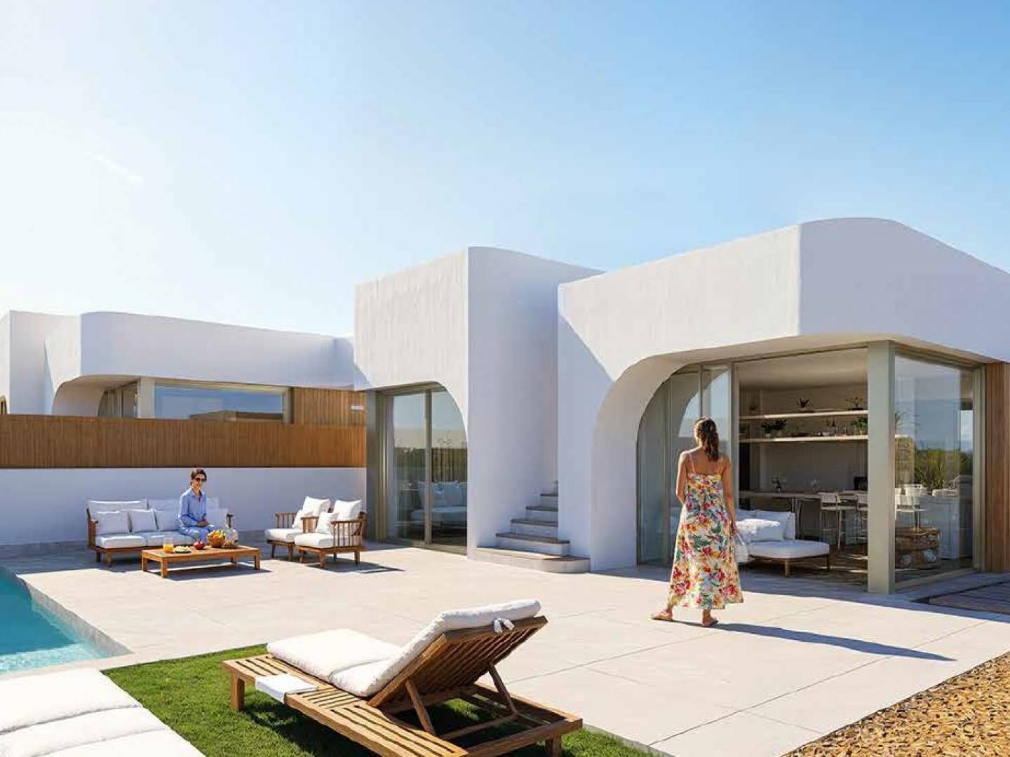 Elk huis opent naar buiten via grote ramen, terrassen en een privésolarium , vanwaar u kunt genieten van gouden zonsondergangen over de golfbaan en de zee . Het privézwembad , de multifunctionele kelder en de hoogwaardige afwerking verheffen elk detail tot een kunstwerk.