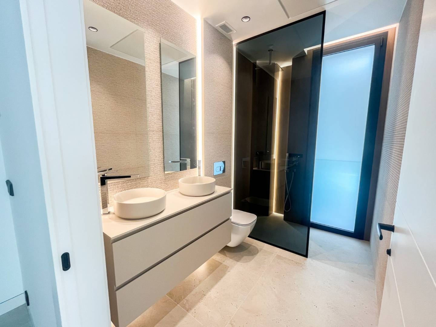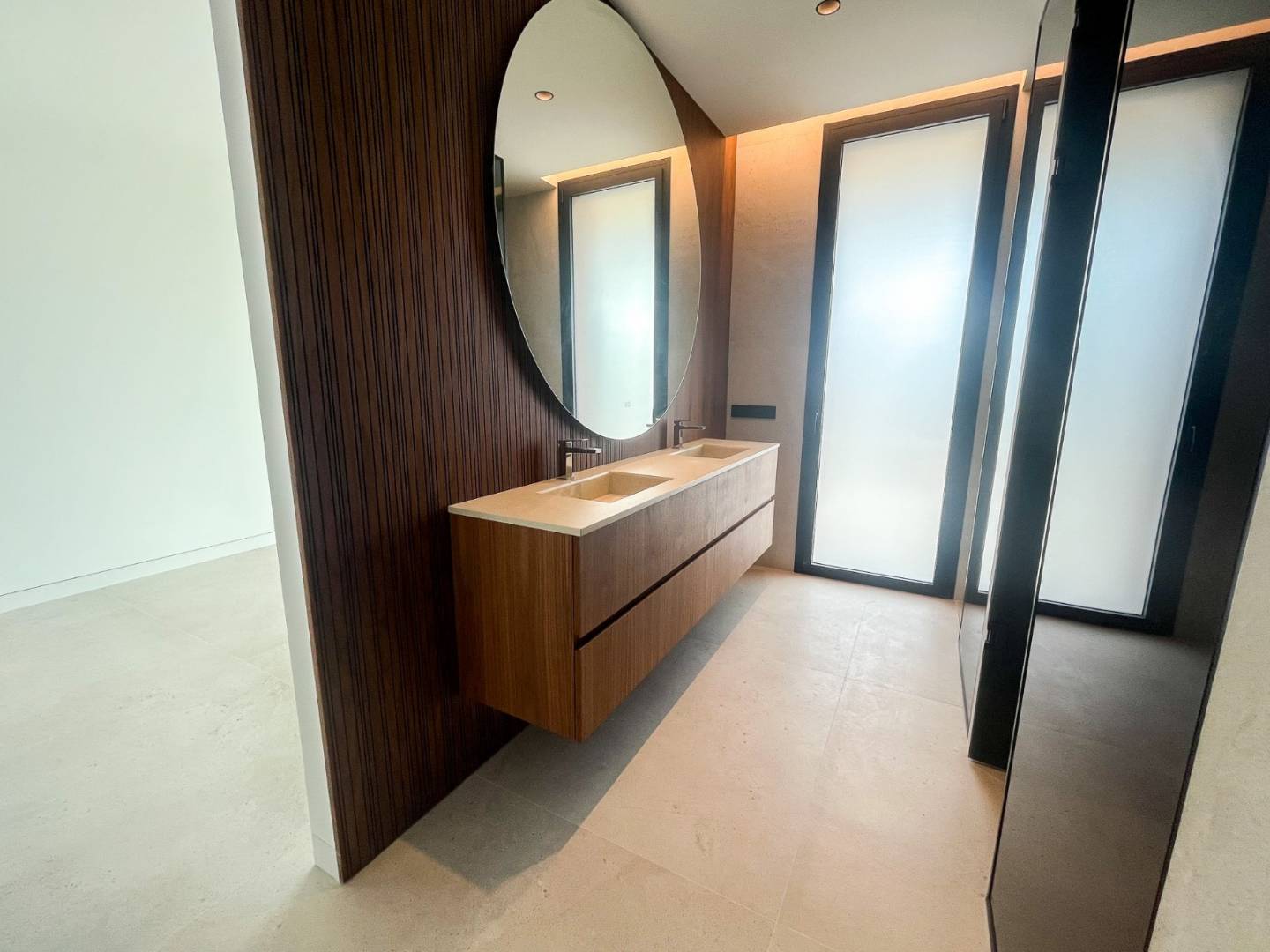 Deze residentie omvat vier master suites , elk met een eigen badkamer, en biedt een harmonieuze mix van verschillende materialen en een intieme, rustige sfeer. De woonruimtes komen uit op ruime, lichtrijke vertrekken die zijn uitgerust met geavanceerde domotica , vloerverwarming en efficiënte airconditioning, waardoor het hele jaar door absoluut comfort gegarandeerd is. Het privékantoor biedt een rustige en elegante werkplek, ideaal voor een discrete, internationale levensstijl.