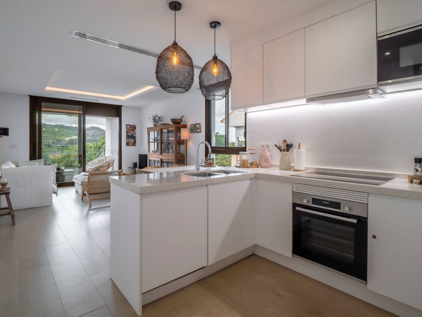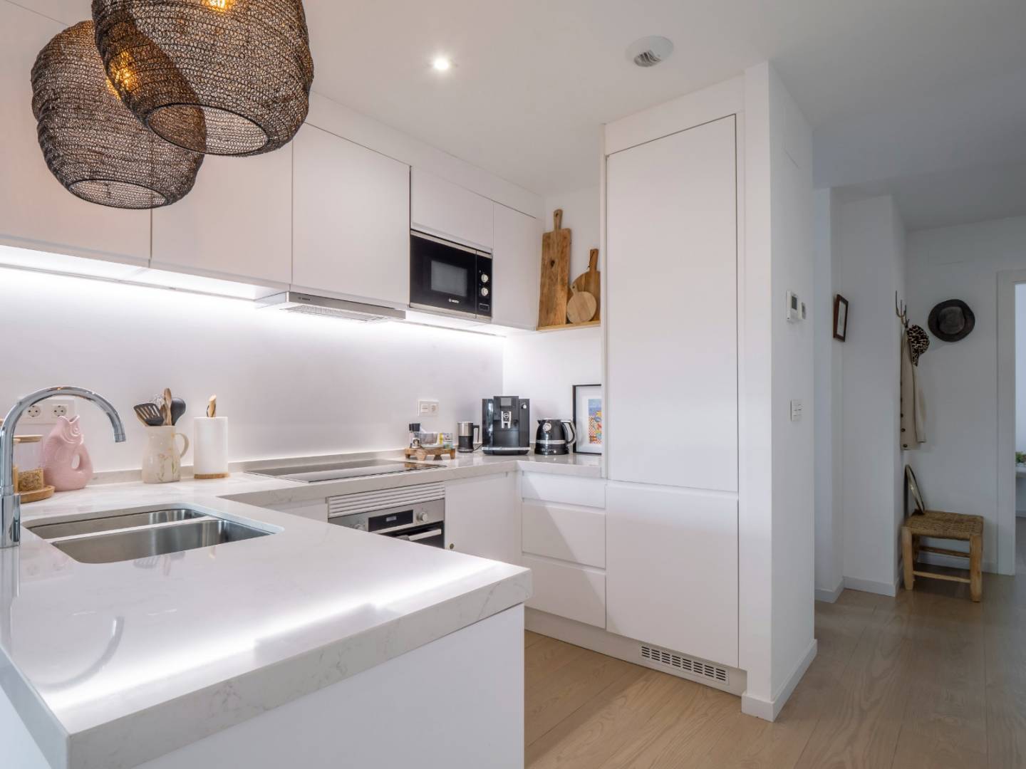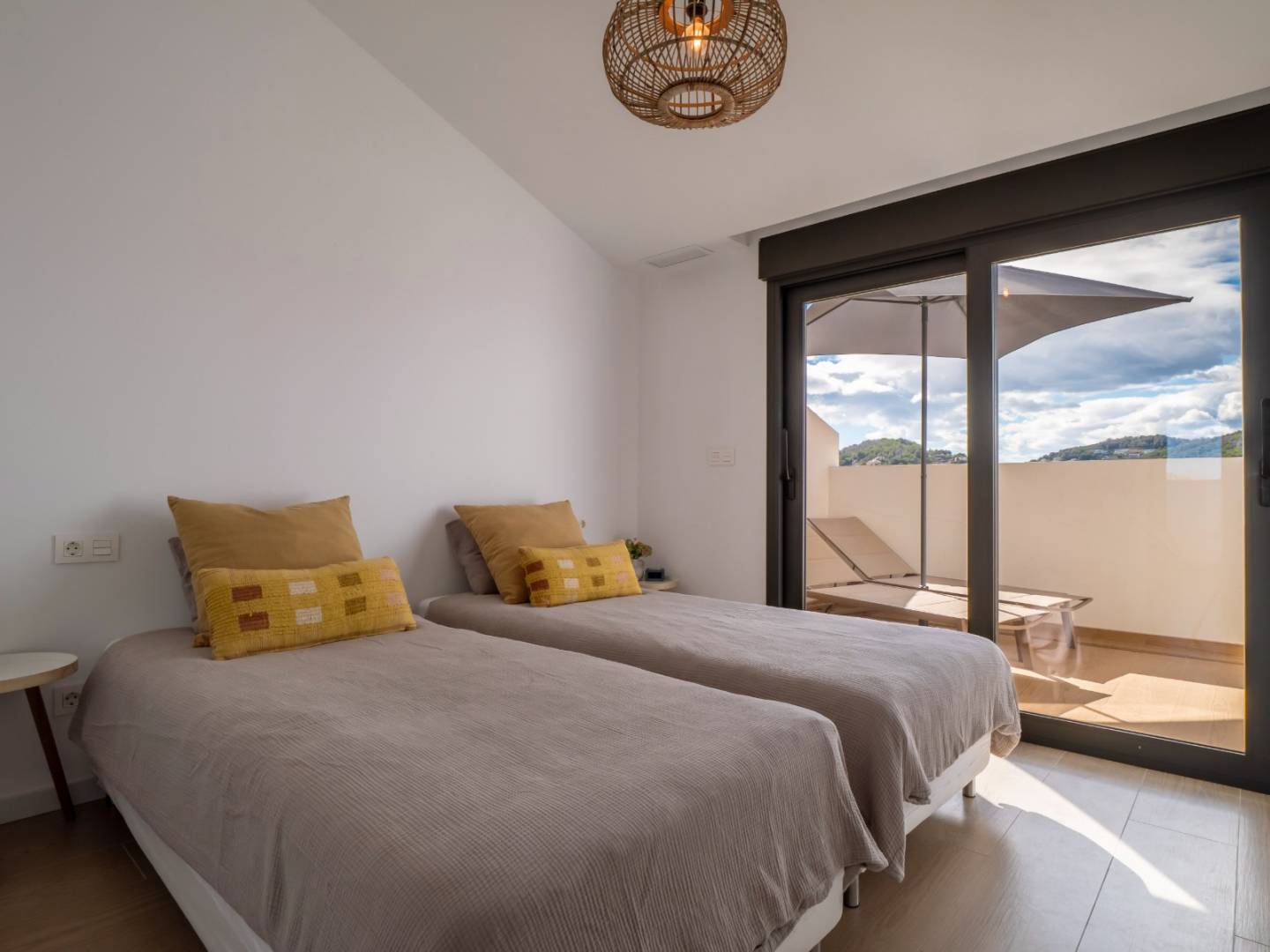 Deze elegante woning biedt drie slaapkamers , twee badkamers en 100 m² woonoppervlak , verdeeld over een lichte verdieping met een woonkamer en een volledig uitgeruste open keuken , en een rustigere verdieping voor ongestoorde avonden. Het huis beschikt over uitzonderlijk veel natuurlijk licht dankzij het balkon op het zuiden en het ruime dakterras – een ideale plek om van de zon te genieten en te genieten van het adembenemende uitzicht op het Montgó- gebergte.
