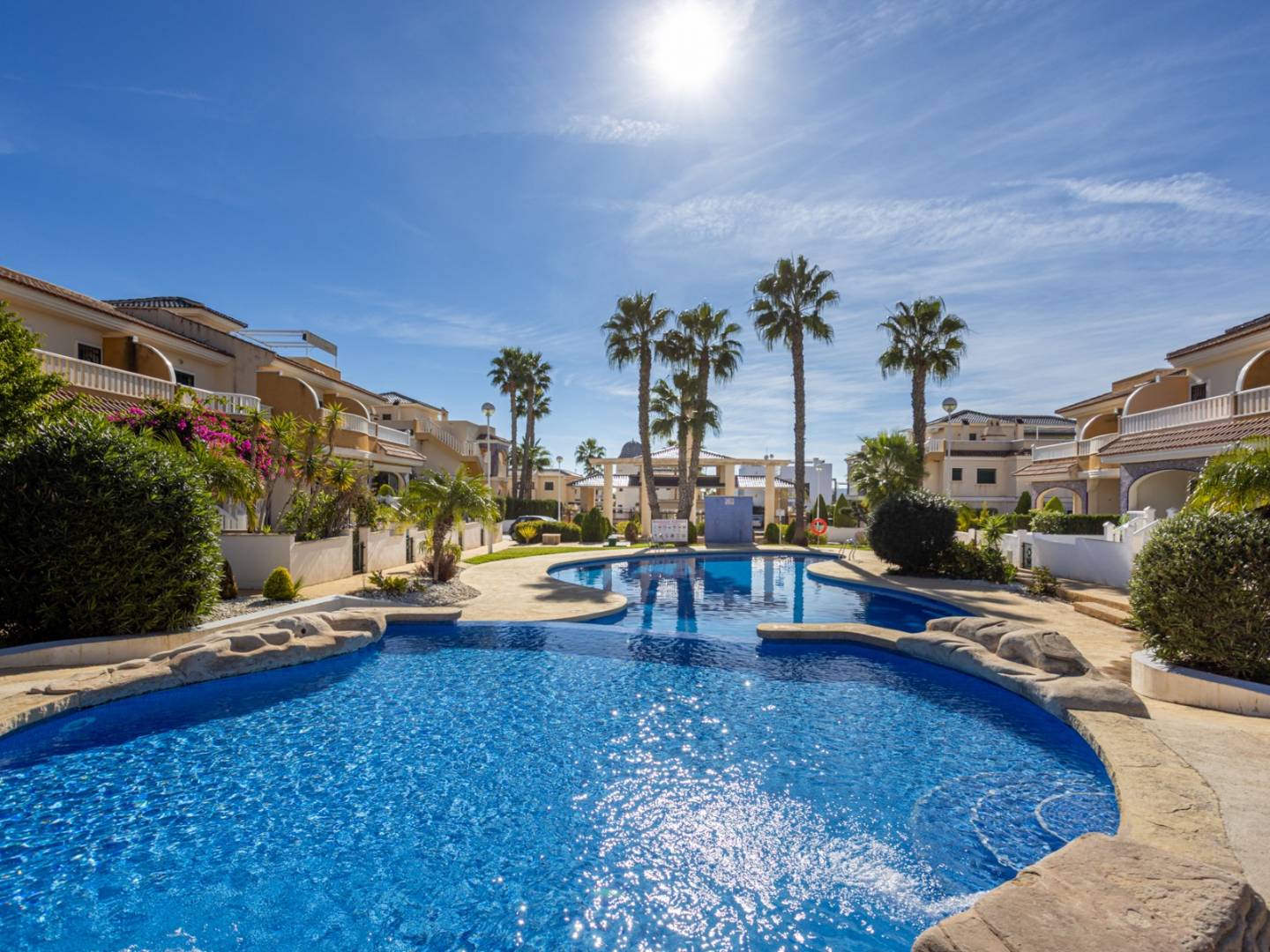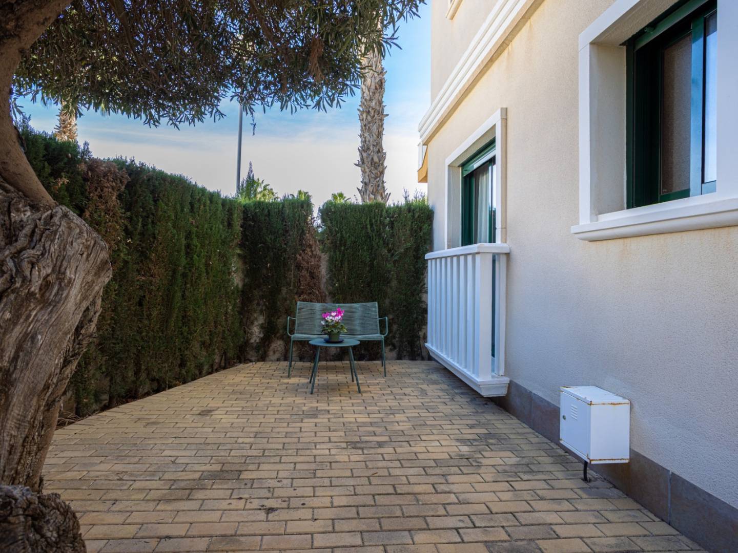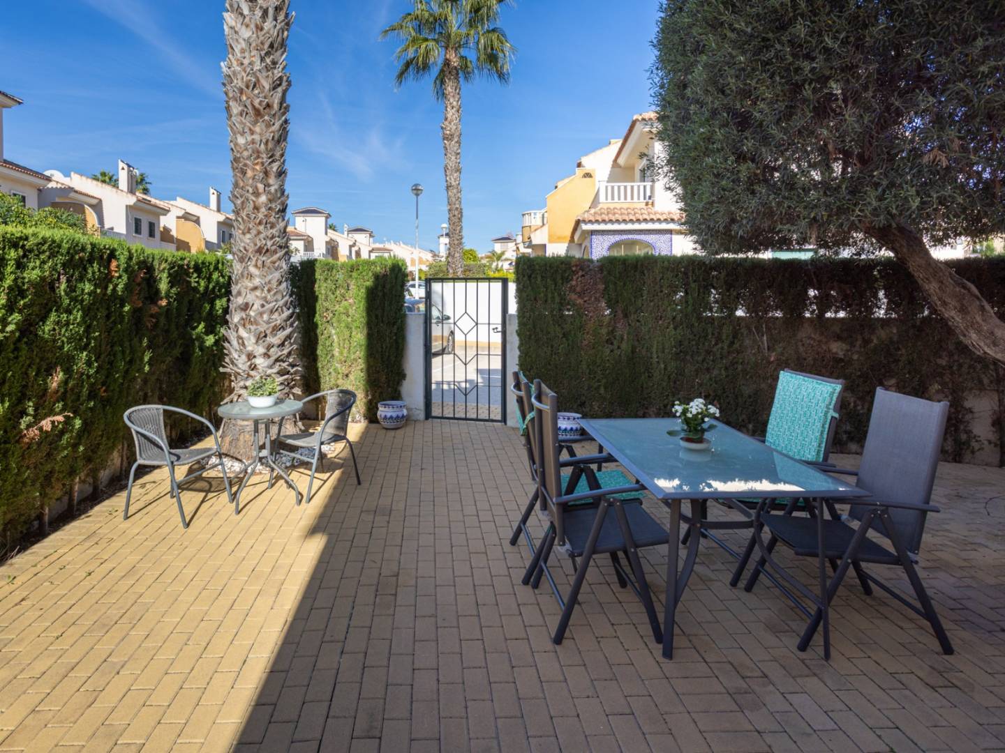 Appartement op de begane grond met tuin en gemeenschappelijk zwembad in Ciudad Quesada Wij presenteren dit charmante appartement op de begane grond, gelegen in een van de meest gewilde woonwijken van Doña Pepa, in de gemeente Rojales. Een perfecte woning voor wie op zoek is naar comfort, een mediterrane stijl en de nabijheid van alle voorzieningen. Met een bebouwde oppervlakte van 84 m² beschikt deze woning over een praktische en lichte indeling. Bij binnenkomst in het appartement vindt u een ruime overdekte veranda, ideaal om het hele jaar door te genieten van het warme klimaat van de Costa Blanca. De woonkamer bestaat uit een gezellige woon-/eetkamer met een open keuken, volledig uitgerust met moderne apparatuur, waardoor een functionele en comfortabele ruimte ontstaat voor dagelijks gebruik. Het appartement beschikt over twee ruime slaapkamers, beide met inbouwkasten, en een complete badkamer met smaakvolle afwerking. De woning verkeert in uitstekende staat, is direct bewoonbaar en wordt volledig gemeubileerd opgeleverd, inclusief alle elektrische apparaten in de keuken en airconditioning, voor optimaal comfort het hele jaar door. Het terras naast de woonkamer is voorzien van verticale toldo's (zonneschermen), die in de zomer voor schaduw zorgen en in de koelere maanden voor wat extra warmte zorgen. Buiten beschikt de woning over een privétuin, perfect om te ontspannen, te zonnebaden of buiten te eten. Er is ook een privéparkeerplaats direct voor de tuinpoort. Er is toegang tot niet één, maar drie prachtige gemeenschappelijke zwembaden, omgeven door goed onderhouden groene zones, ideaal om te ontspannen en te genieten van de omgeving. Ongeëvenaarde locatie: De woning ligt op slechts 12 minuten van de stranden van Guardamar en Torrevieja, op 40 minuten van de luchthaven van Alicante, op 5 minuten van recreatiegebieden, restaurants en supermarkten, en op 7 minuten van de golfbaan La Marquesa, een van de meest gerenommeerde in de regio. Deze woning is een uitstekende optie voor zowel permanente bewoning als vakantiewoning, of zelfs een geweldige investeringsmogelijkheid dankzij de grote vraag naar vakantieverhuur.