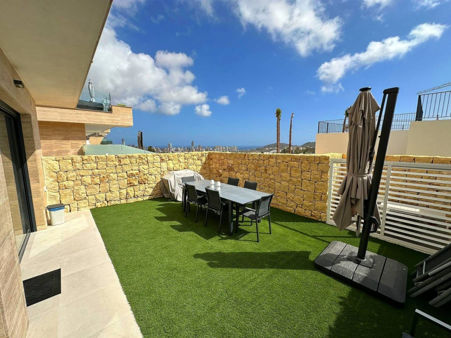 Charmant maisonnette-appartement met aparte woonruimtes, privéterras en tuin en geselecteerde gemeenschappelijke ruimtes met uitzicht op zee, vlakbij de golfbaan Finestrat in Alicante.