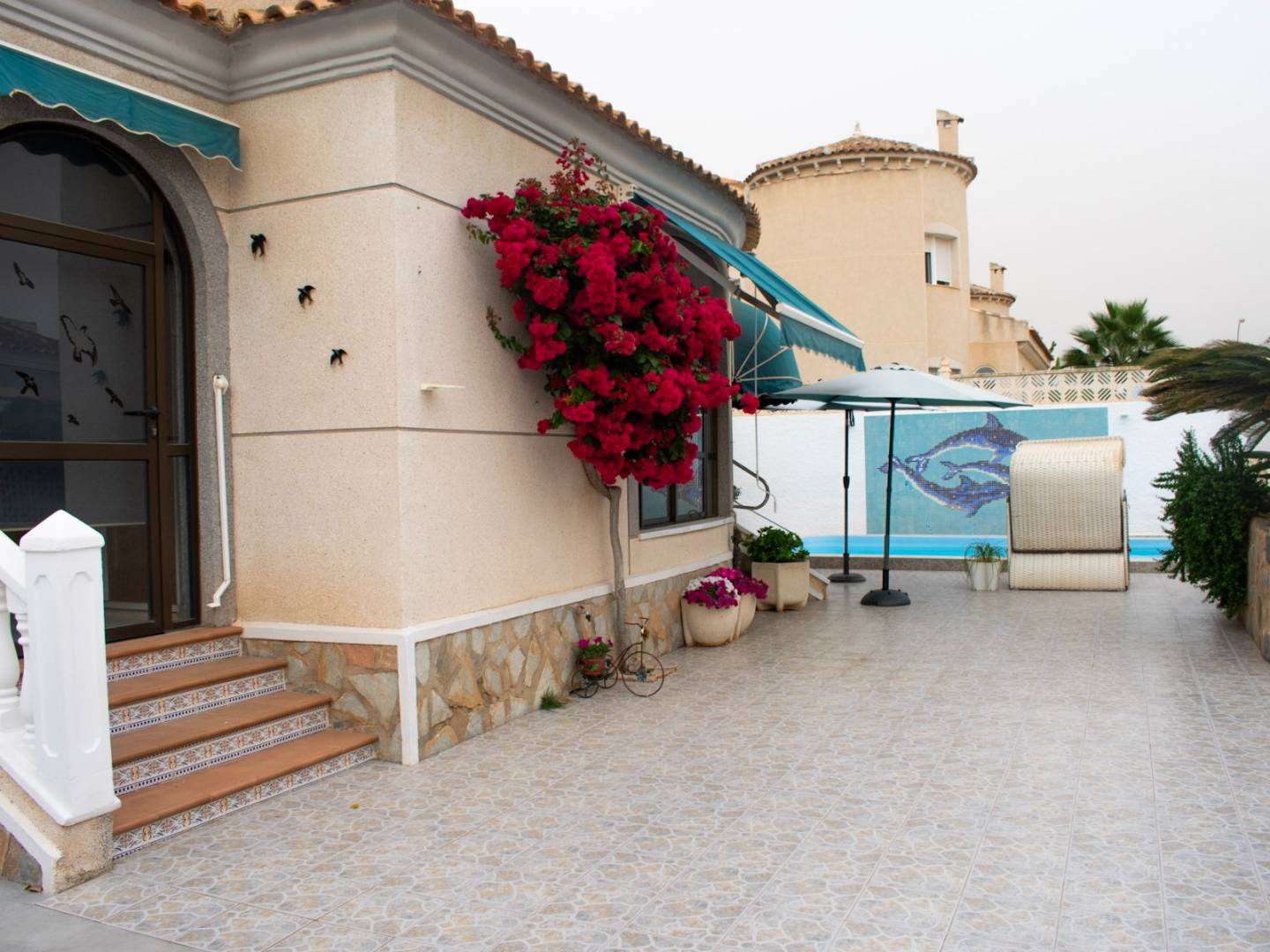 De buitenruimte is een van de grootste pluspunten van deze woning: een groot privézwembad , een buitendouche , een ruime tuin met terras, een aparte tuinschuur en een aparte berging , ideaal als extra opslagruimte of werkplaats. De privégarage biedt plaats aan één auto en er is gemakkelijk ruimte voor een tweede voertuig op het terrein.