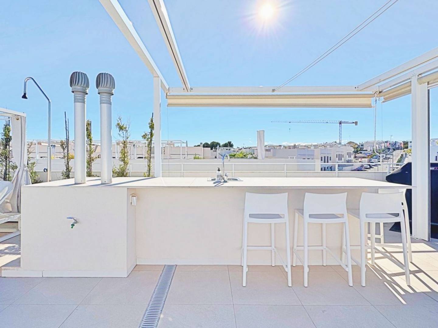 Het absolute hoogtepunt is het uitzonderlijke privé-solarium, dat het hele jaar door optimaal gebruikmaakt van het mediterrane klimaat. Het biedt ontspanningsruimtes , een eethoek in de openlucht , een bar , pergola's en volop ruimte om te ontspannen en te socializen. Vanaf hier is het panoramische uitzicht over de zoutpannen en de hele stad Torrevieja adembenemend.