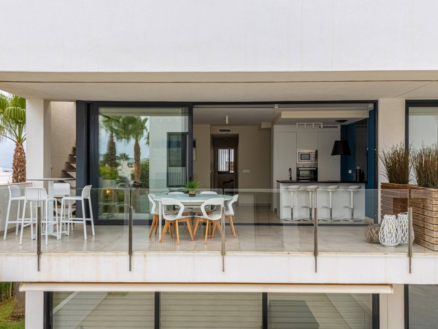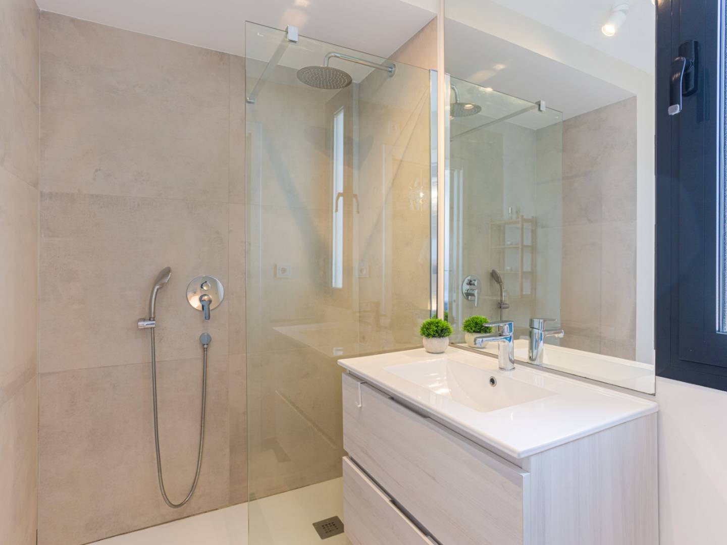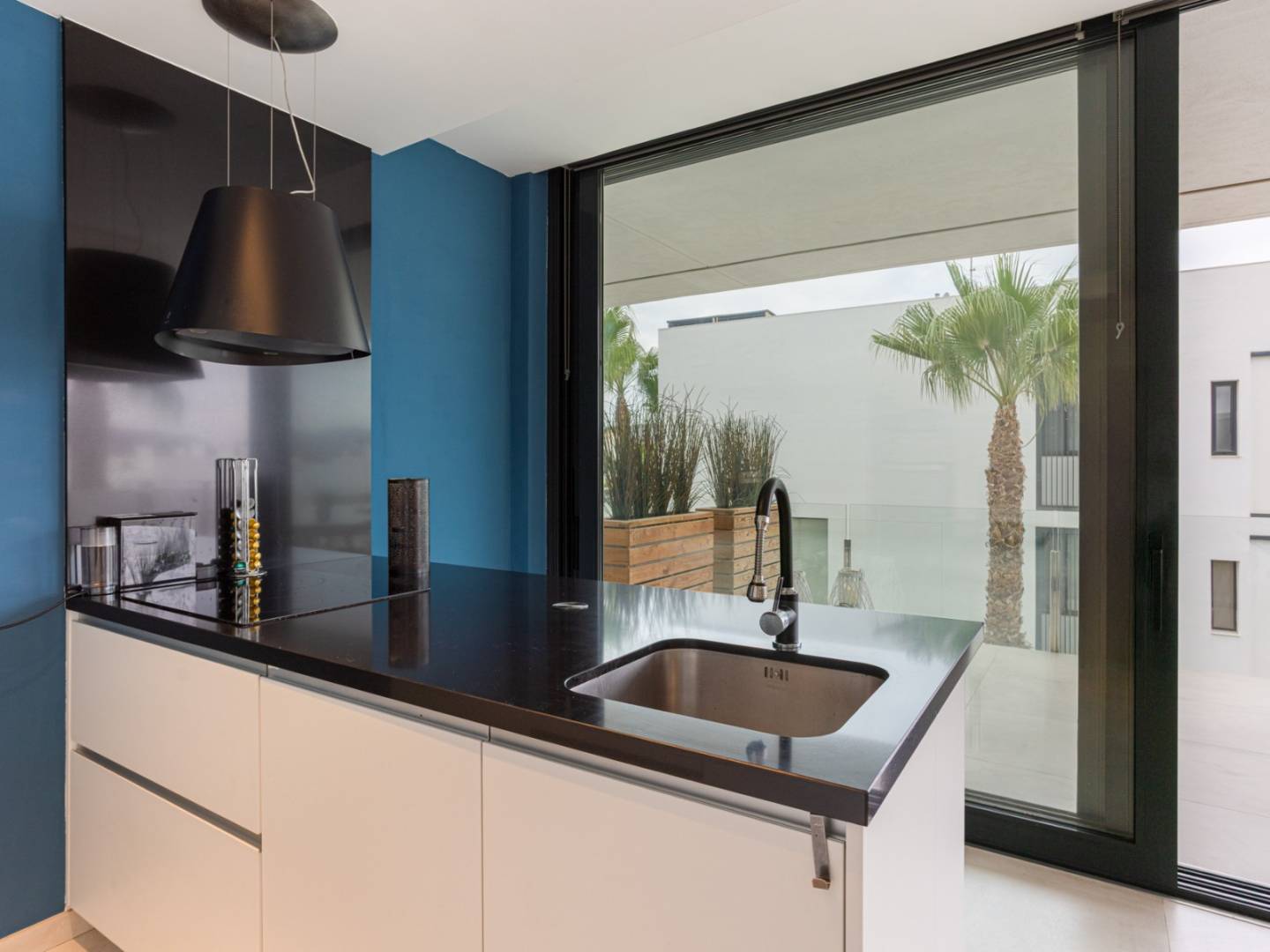 Deze woning biedt drie ruime slaapkamers met inbouwkasten , ideaal voor gezinnen of iedereen die extra ruimte nodig heeft om thuis te werken. Er zijn ook twee badkamers , waarvan één en suite, beide modern en hoogwaardig afgewerkt. De lichte woon- en eetkamer komt uit op een privéterras – de perfecte plek om te ontspannen en het hele jaar door te genieten van het mediterrane klimaat.