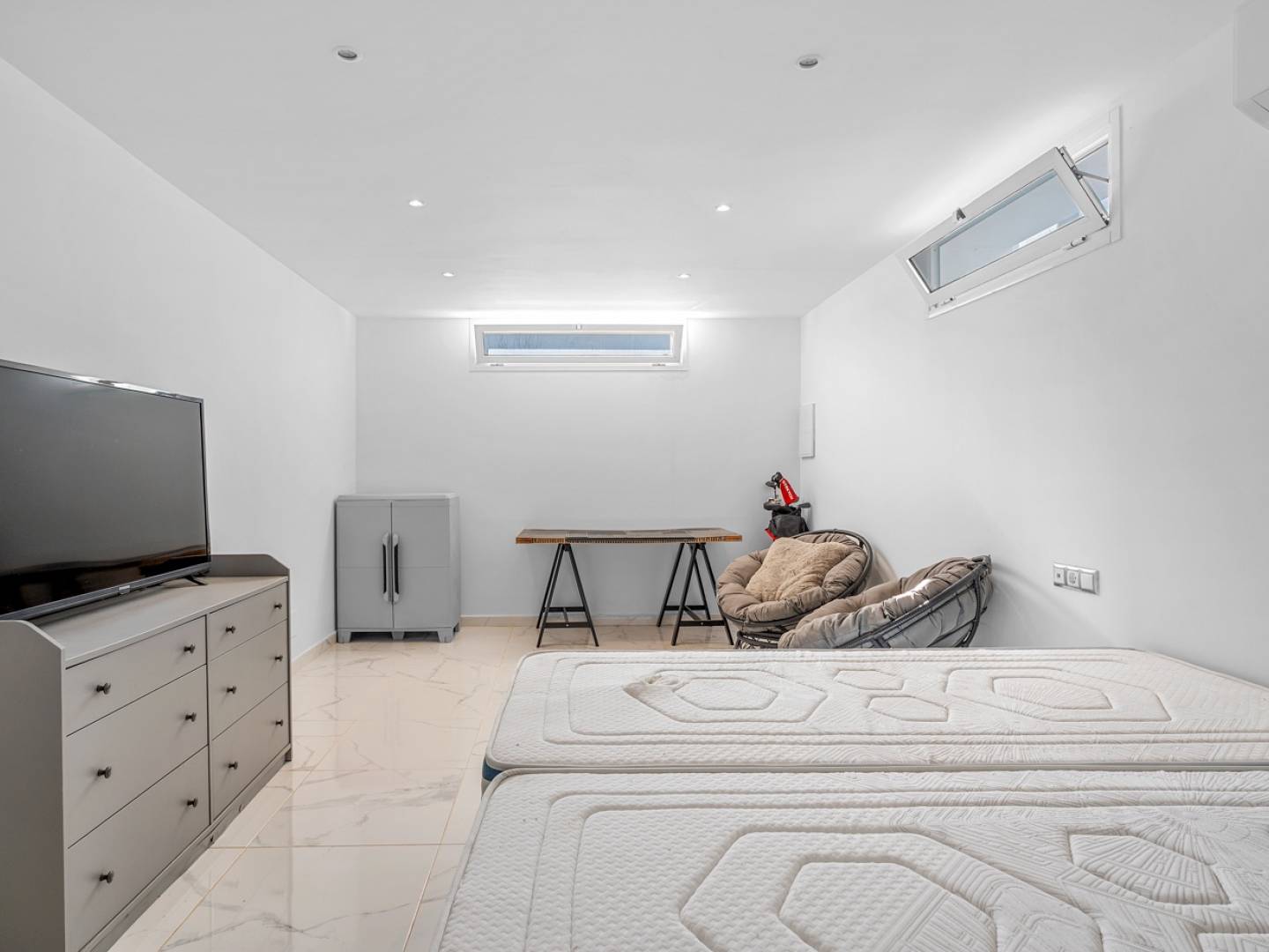 Deze prachtige vrijstaande villa is gelegen op een van de meest bevoorrechte locaties in Ciudad Quesada, vlakbij het stadscentrum, maar toch omgeven door privacy en rust. Met een perceel van 500 m² en een woonoppervlak van 134 m² is de woning verdeeld over twee verdiepingen en biedt ruimte, comfort en talloze mogelijkheden. De begane grond bestaat uit vier slaapkamers, allemaal voorzien van individuele airconditioning, twee complete badkamers, een ruime en lichte woon-/eetkamer en een functionele open keuken die naadloos aansluit op de woonkamer. De benedenverdieping beschikt over een kelder met een complete badkamer en een open ruimte, ideaal voor het creëren van een extra slaapkamer, een gastenverblijf, een recreatieruimte of een andere bestemming die de toekomstige eigenaar naar eigen wens kan aanpassen. De buitenkant is ontworpen om optimaal te profiteren van het uitstekende klimaat van de Costa Blanca dankzij een privézwembad van 8x4 meter en een volledig uitgeruste buitenkeuken, die de perfecte plek is voor maaltijden en bijeenkomsten in de buitenlucht. De zuidwestelijke ligging zorgt voor de hele dag zon en het ruime terrein rondom het huis biedt voldoende ruimte voor een tuin, ontspanningsruimtes of andere projecten die u wilt ontwikkelen. Bovendien biedt het perceel voldoende ruimte om twee auto's te parkeren, wat gemak en veiligheid garandeert. Deze unieke woning combineert een uitstekende locatie, privacy, ruimte en levenskwaliteit, waardoor het ideaal is voor wie het hele jaar door wil genieten van de mediterrane levensstijl of als een geweldige investeringsmogelijkheid in een van de meest gewilde bestemmingen aan de Costa Blanca.