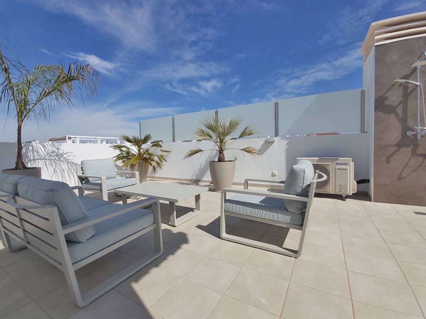 Volledig ingerichte Penthouse met 2 slaapkamers en 2 badkamers Op zoek naar een exclusief penthouse in een van de mooiste regios van Spanje? Deze luxe penthouse in Ciudad Quesada biedt alles wat u nodig heeft voor een zorgeloos en comfortabel verblijf. Volledig gemeubileerd, stijlvol gedecoreerd en voorzien van alle huisraad, beddengoed en linnengoed. De gemeenschappelijke ruimte beschikt over 3 zwembaden Luxe en comfort in een unieke setting Deze prachtige penthouse beschikt over: Twee ruime slaapkamers volledig ingericht voor optimaal comfort.Twee moderne badkamers elegant afgewerkt en voorzien van alle gemakken.Een volledig uitgeruste keuken met hoogwaardige apparatuur en voldoende opbergruimte.Een ruime en sfeervolle woonkamer met comfortabel meubilair om heerlijk te ontspannen.AlarmsysteemTwee terrassen:Een balkon met een tafel en vier stoelen.Een royaal dakterras van 78 m² met een adembenemend uitzicht over de lagune en de prachtig aangelegde tuinen met drie grote gemeenschappelijke zwembaden. Genieten van buitenleven en luxe faciliteiten Kinderspeelplaats, fitness en gratis tennisvelden in de directe omgeving.Dakterras met alles wat u nodig heeft:Grote eettafel met zes stoelen onder een verschuifbare luifel.Gezellige loungeset en comfortabele ligbedden.Complete buitenkeuken met barbecue, koelkast en spoelbak.Buitendouche met warm en koud water. Veilig en praktisch parkeren Het penthouse beschikt over: Afgesloten buitenparking met drie elektrische poorten.Privéparkeerplaats, zodat uw voertuig altijd veilig staat. Bent u op zoek naar een luxueuze en instapklare woning op een toplocatie? Dit penthouse in Ciudad Quesada biedt u alles voor een droomverblijf onder de Spaanse zon!