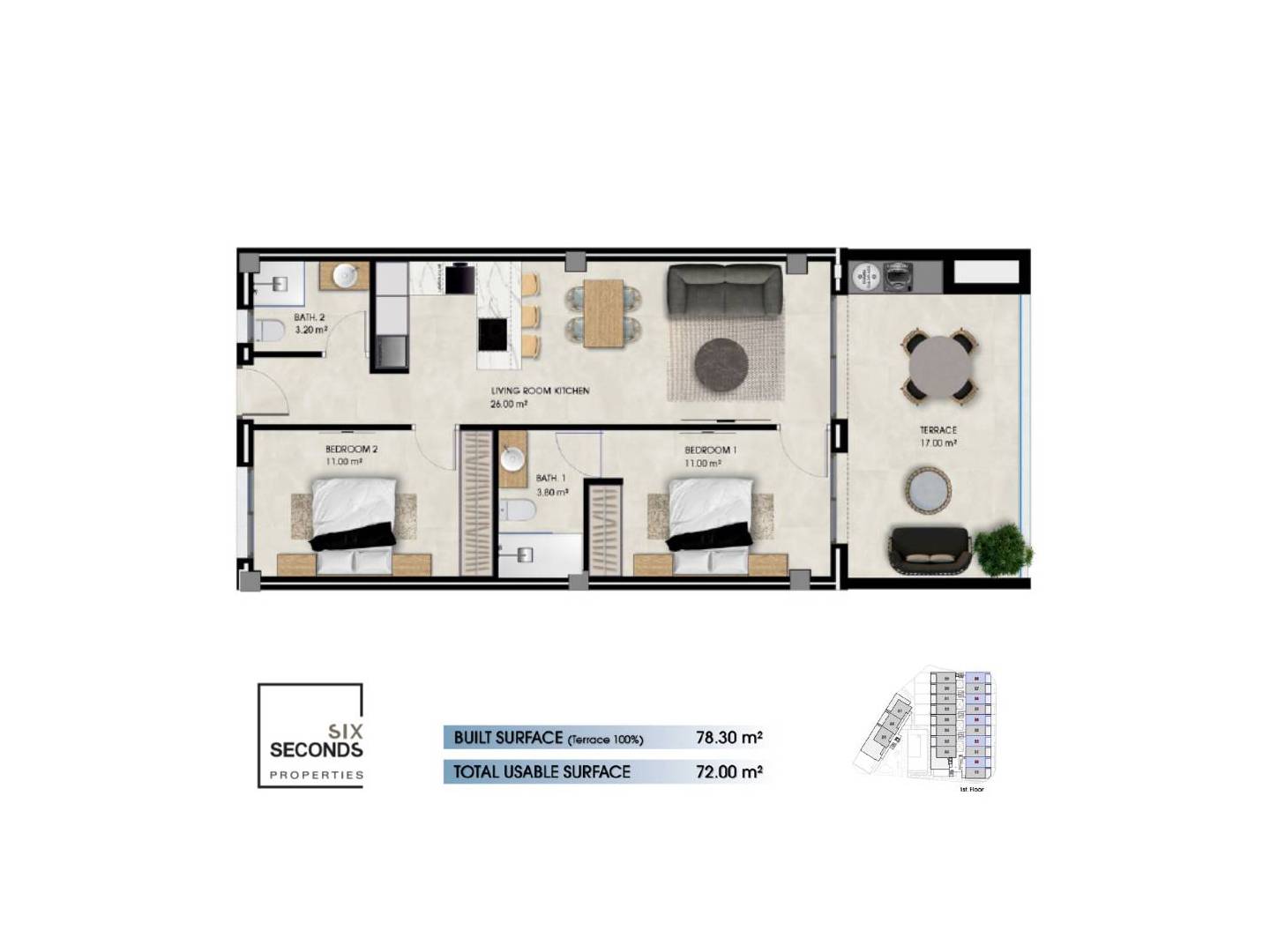 Ervaar de mediterrane levensstijl ten volle, op slechts een steenworp afstand van de zee, in dit moderne wooncomplex met 63 stijlvolle appartementen . Elk appartement is zorgvuldig ontworpen voor optimaal comfort , privacy en een exclusieve beleving aan zee. Het beschikt over twee slaapkamers , twee badkamers , lichte woonruimtes, een privéterras , parkeergelegenheid en berging – allemaal volledig gemeubileerd voor uw gemak bij aankomst. Dankzij de toplocatie en de uitstekende prijs-kwaliteitverhouding is deze veelzijdige woning ideaal voor gezinnen of als investering voor seizoensverhuur .