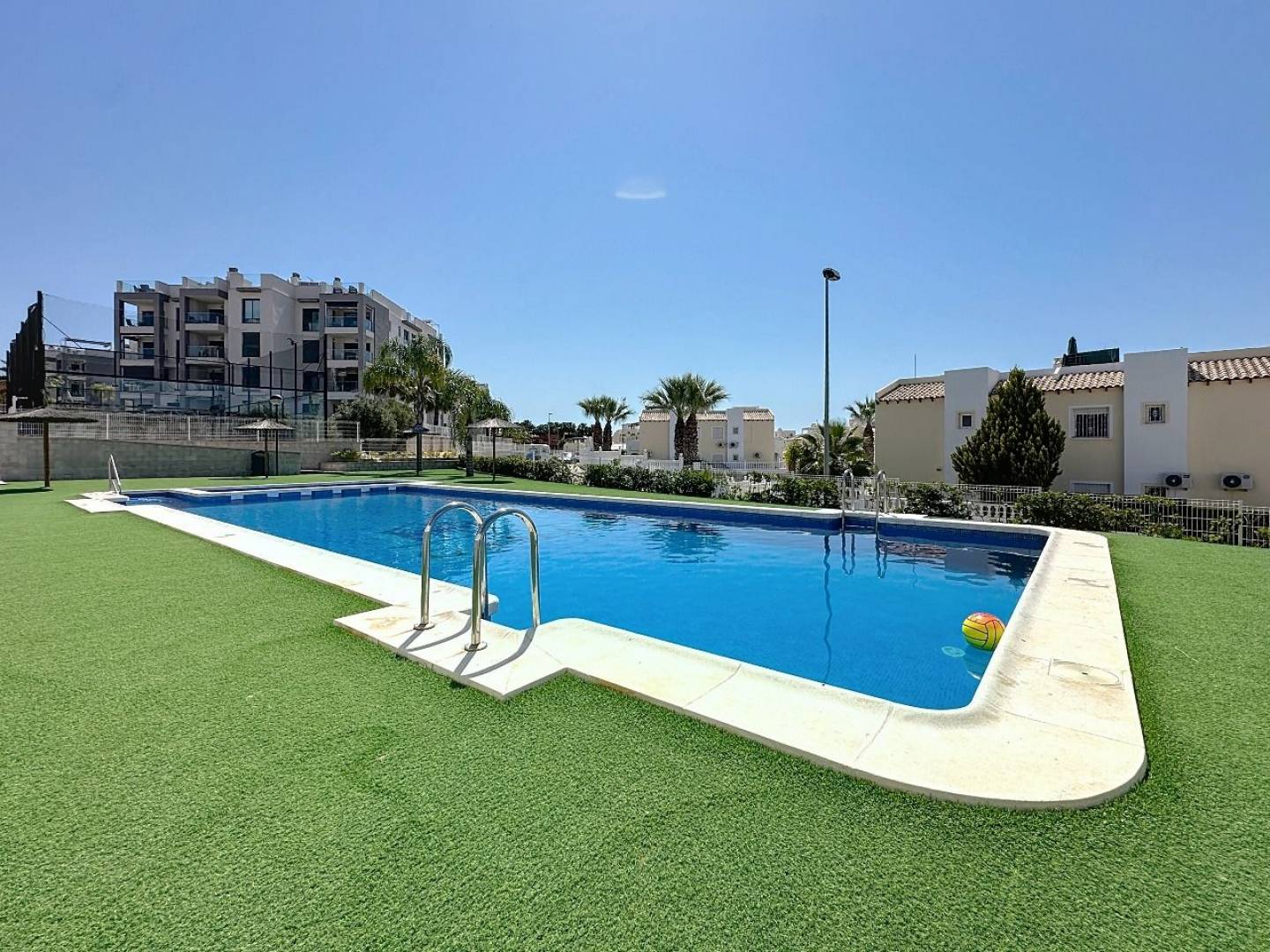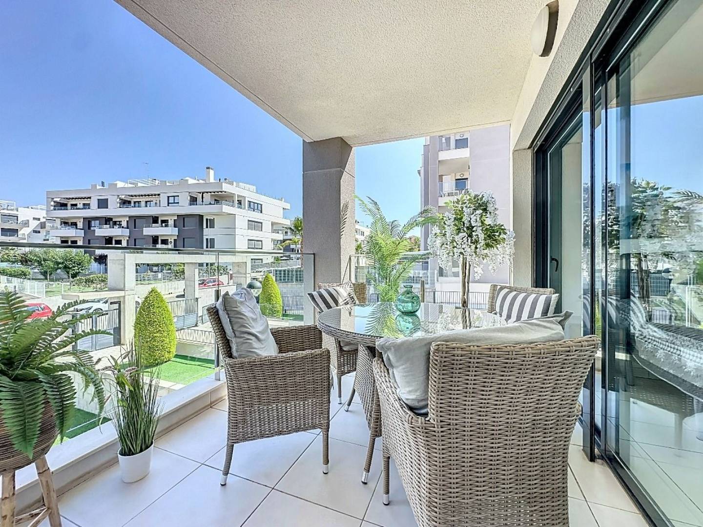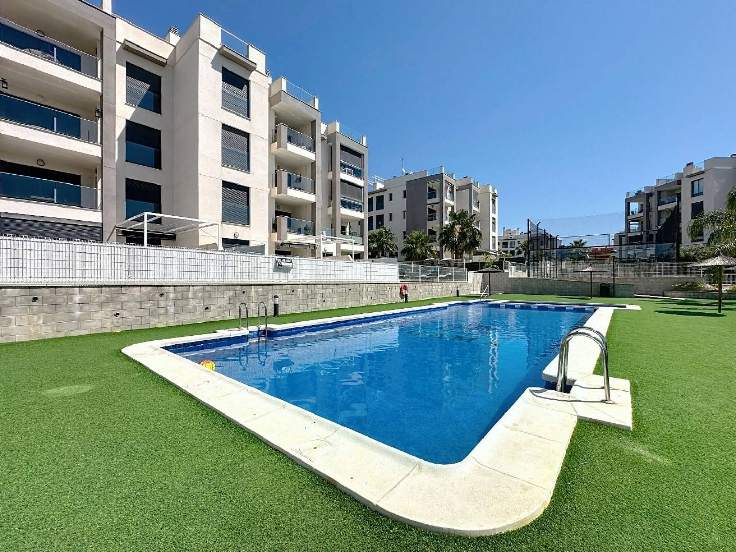 Modern appartement met 2 slaapkamers in Orihuela. Dit elegante appartement is gelegen in de aantrekkelijke wijk Las Filipinas in Orihuela, Alicante, en combineert een eigentijdse stijl met functionaliteit en comfort. Met een woonoppervlakte van 119 m² biedt deze woning een ideale plek voor wie op zoek is naar een gezellig hoekje aan de Levantijnse kust. Indeling en ruimtes. Met twee comfortabele slaapkamers en twee complete badkamers is de woning ontworpen om comfort en privacy te maximaliseren. De lichte en luchtige woonkamer loopt naadloos over in een moderne open keuken, perfect voor gezellige bijeenkomsten met familie of vrienden. Voorzieningen en comfort. Dit appartement is voorzien van airconditioning dankzij een centraal airconditioningsysteem, wat zorgt voor een koele omgeving op warme zomerdagen en een behaaglijk warm klimaat in de winter, mede dankzij de centrale verwarming. Bewoners kunnen genieten van een prachtig gemeenschappelijk zwembad, ideaal om te ontspannen en te genieten van zonnige dagen. De woning onderscheidt zich door de buitentuin, een natuurlijke ruimte die de schoonheid van de omgeving benadrukt. Veiligheid en bereikbaarheid. Uitgerust met een veiligheidsdeur en dubbele beglazing, garandeert deze woning gemoedsrust en welzijn. De woning beschikt ook over een garage en een berging, wat een praktische benadering van het dagelijks leven weerspiegelt. De locatie in Las Filipinas biedt uitstekende verbindingen, waardoor u gemakkelijk toegang heeft tot de belangrijkste wegen en stedelijke voorzieningen, zodat alles wat u nodig heeft binnen handbereik is. Energiecertificaten Met een energielabel C is dit appartement niet alleen stijlvol, maar ook energiezuinig en bevordert het een duurzame levensstijl. Ontdek de mogelijkheid om dit moderne appartement te kopen in een van de meest charmante gebieden van de Costa Blanca, waar stijl en comfort samenkomen.