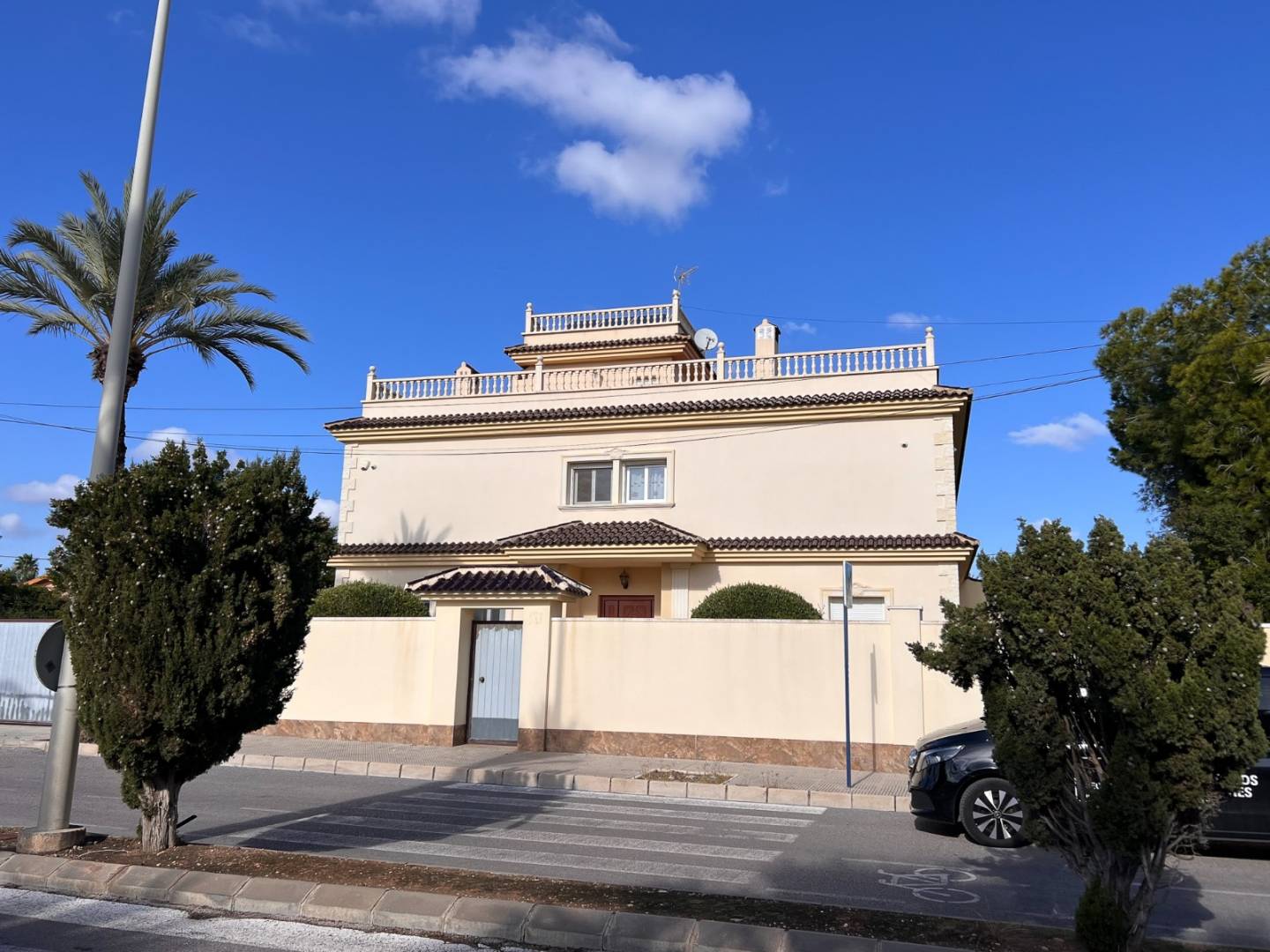 Deze luxueuze en elegante villa is gelegen aan een van de meest exclusieve straten van Cabo Roig en geniet van een bevoorrechte ligging aan zee in een prestigieuze woonwijk, omgeven door prachtig aangelegde tuinen en andere luxe villa's. Het pand staat op een privéperceel van 1.313 m² en biedt 511 m² woonruimte . Verdeeld over twee verdiepingen beschikt de villa over een dakterras met een panoramisch uitzicht – ideaal om het hele jaar door te genieten van het mediterrane klimaat. De villa biedt in totaal 11 slaapkamers en 8 badkamers , verdeeld over ruime suites en aparte slaapkamers , waarvan sommige met een eigen badkamer en andere met gedeelde faciliteiten . Dit zorgt voor optimaal comfort voor een groot gezin en hun gasten. Elke slaapkamer heeft ook een eigen kleedkamer , een perfecte combinatie van functionaliteit en organisatie. De villa beschikt over een elegante woon- en eetkamer met open haard , diverse multifunctionele ruimtes, twee keukens en een grote veranda met een prachtig uitzicht op de tuin. Een privézwembad en een zorgvuldig aangelegde natuurlijke tuin maken het geheel compleet. In de tuin bevindt zich een volledig zelfstandig bijgebouw met badkamers , dat gebruikt kan worden voor extra gasten of voor huishoudelijke of servicedoeleinden .
