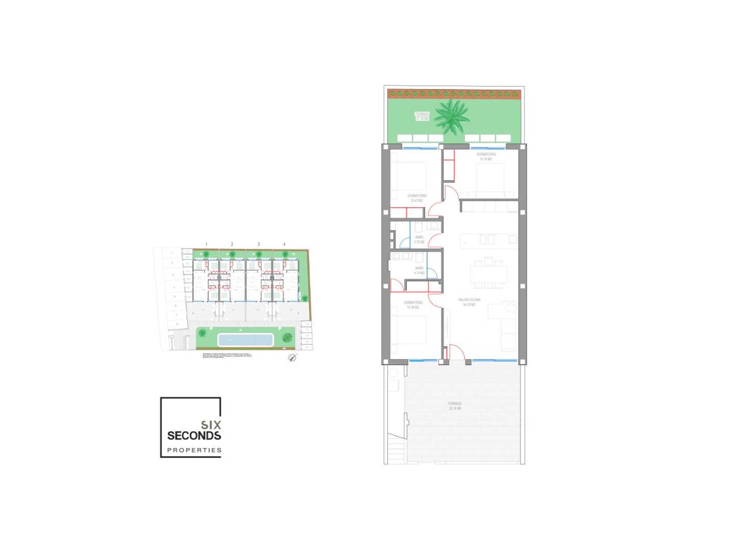 Ontdek dit droombungalowcomplex in Pilar de la Horadada , een toplocatie aan de Costa Blanca die rust, comfort en de mediterrane levensstijl combineert. De bungalows beschikken over drie slaapkamers en twee badkamers , ontworpen voor optimaal comfort en maximale functionaliteit. De stijlvolle, volledig uitgeruste keuken is geïntegreerd in de lichte, open woon-/eetkamer – ideaal om familie en vrienden te ontvangen. Airconditioning zorgt het hele jaar door voor aangename temperaturen en biedt toegang tot een goed onderhouden gemeenschappelijk zwembad , perfect om te ontspannen in de zon. De bungalows op de begane grond hebben een eigen tuin en een ruim terras , terwijl de bovenverdiepingen een uitzonderlijk solarium en nog een terras bieden – perfect om optimaal te genieten van het mediterrane klimaat. Dankzij de nabijheid van de zee , golfbanen en alle voorzieningen biedt deze bungalow een uitstekende kans, of het nu als hoofdverblijf, tweede huis of investeringsobject is.
