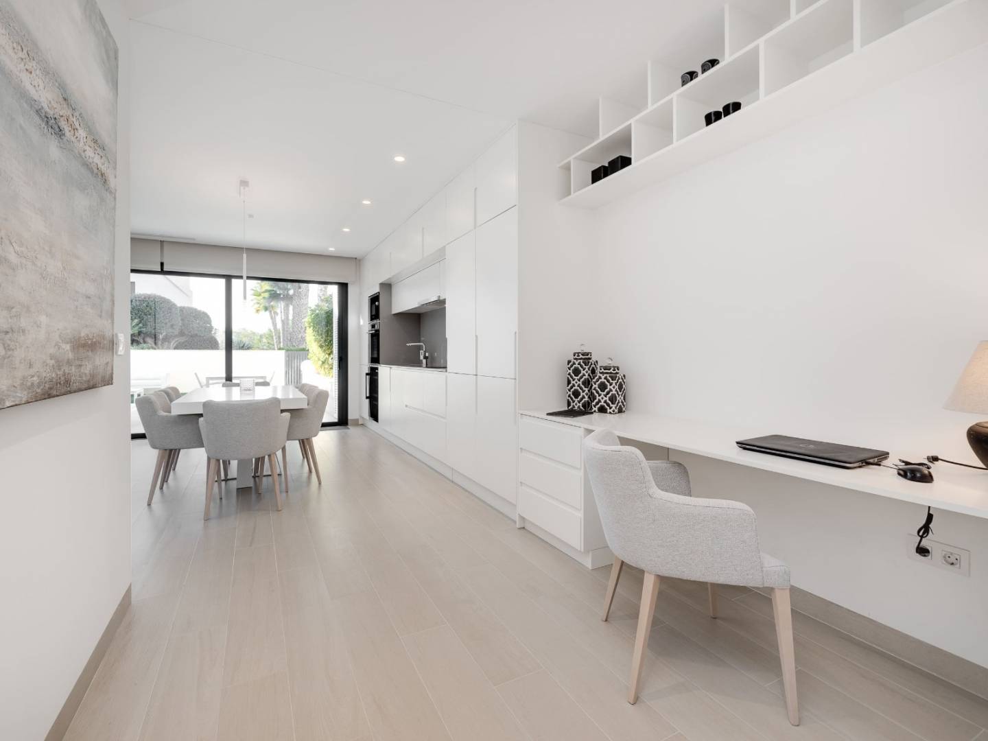 Dit elegante designappartement op de begane grond biedt de perfecte balans tussen modern design, comfort en natuur in een prestigieuze residentie aan de Costa Blanca . Het beschikt over drie ruime en lichte slaapkamers en twee moderne badkamers, ontworpen voor optimaal welzijn. De lichte woon-/eetkamer, met grote erkers, komt direct uit op een spectaculair privéterras van 50 m² met een tuin – een ideale plek om het hele jaar door te genieten van het mediterrane klimaat , met uitzicht op de gemeenschappelijke tuin, het zwembad en het natuurpark . De moderne, volledig uitgeruste open keuken versterkt het royale en elegante gevoel van ruimte. Het op het zuiden georiënteerde appartement profiteert van uitzonderlijk veel natuurlijk licht, verkeert in onberispelijke staat en is direct te betrekken. Het biedt airconditioning (verwarming/koeling) , 105 m² woonruimte , een privéberging van 8 m² en een ondergrondse parkeerplaats . De residentie beschikt over een gemeenschappelijk zwembad en ruime, goed onderhouden tuinen voor een exclusieve en rustige woonomgeving.