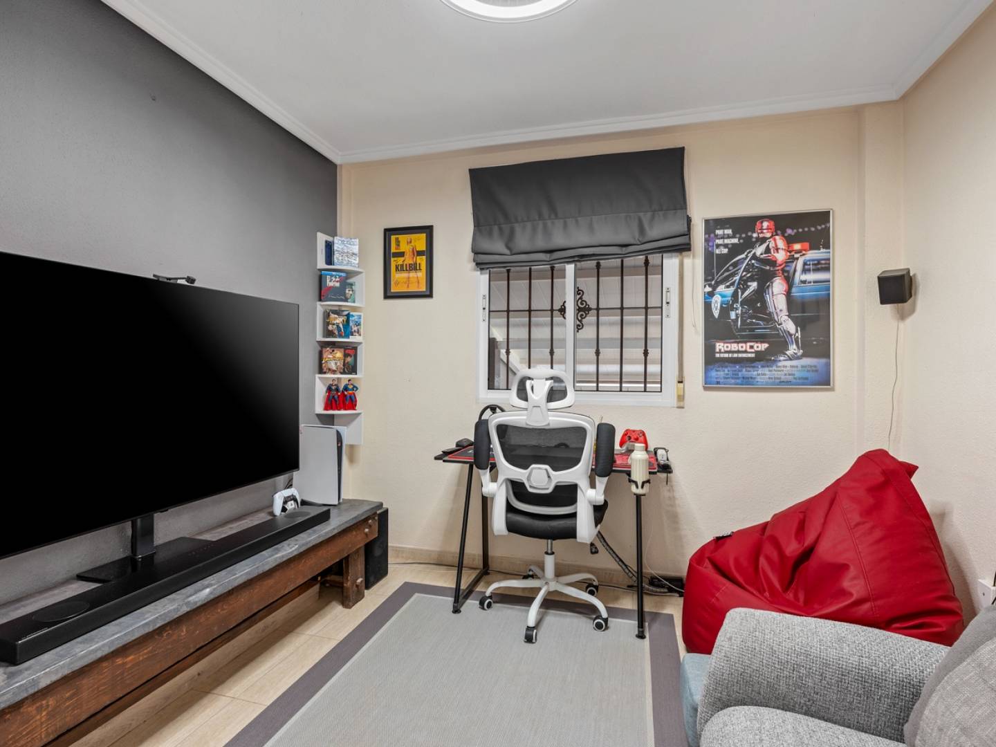 Deze halfvrijstaande woning met 5 slaapkamers biedt een comfortabele en functionele indeling verdeeld over twee verdiepingen, met een serre en een volledig gerenoveerde kelder – ideaal voor wie op zoek is naar veel ruimte en flexibiliteit. Op de begane grond leidt een afgesloten serre naar een lichte woonkamer , grenzend aan een slaapkamer met inloopkast , een badkamer met douche en een aparte, volledig uitgeruste keuken . De bovenverdieping omvat drie slaapkamers , waaronder een tweepersoonsslaapkamer met eigen terras , en twee eenpersoonsslaapkamers die ook gebruikt kunnen worden als kantoor, kinderkamer of gastenkamer. Vanuit hier heeft u toegang tot de privé-serre – een ideale plek om te ontspannen en te genieten van het klimaat in elk seizoen. De kelder , met een woonkamer, slaapkamer en badkamer met douche, is voorzien van airconditioning en ventilatie , waardoor deze perfect is als gastenkamer, apart appartement of recreatieruimte . De woning beschikt over dubbele beglazing , plafondventilatoren en airconditioning in alle kamers, evenals een berging . De woning beschikt over een eigen tuin met een zomer-/winterkeuken , twee parkeerplaatsen en toegang tot een gemeenschappelijk zwembad . Deze direct bewoonbare woning is geschikt als zowel permanente woning als investeringsobject .