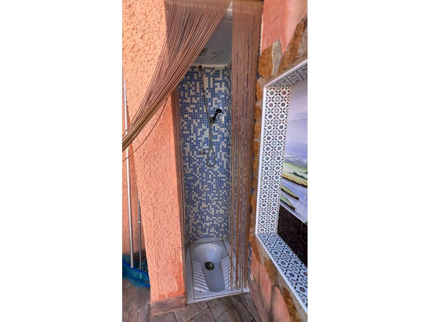 Boven bevinden zich 3 slaapkamers , 2 badkamers (waarvan één en suite), een lichte woonkamer met open haard en een tweede glazen terras met toegang tot de patio en het solarium met uitzicht op de Roze Lagune en de zee .