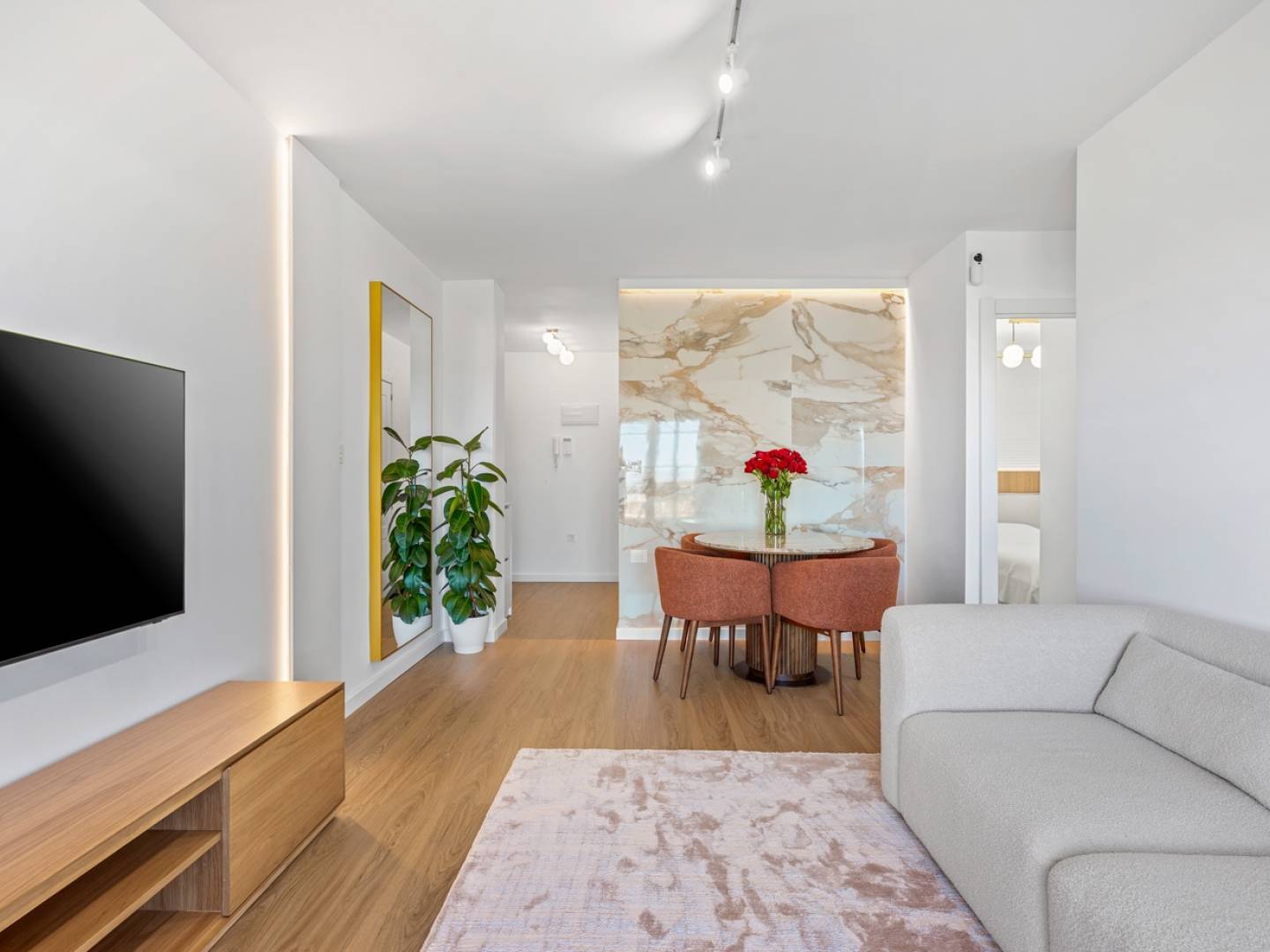 Het appartement wordt volledig uitgerust en gemeubileerd opgeleverd met een modern en functioneel design: