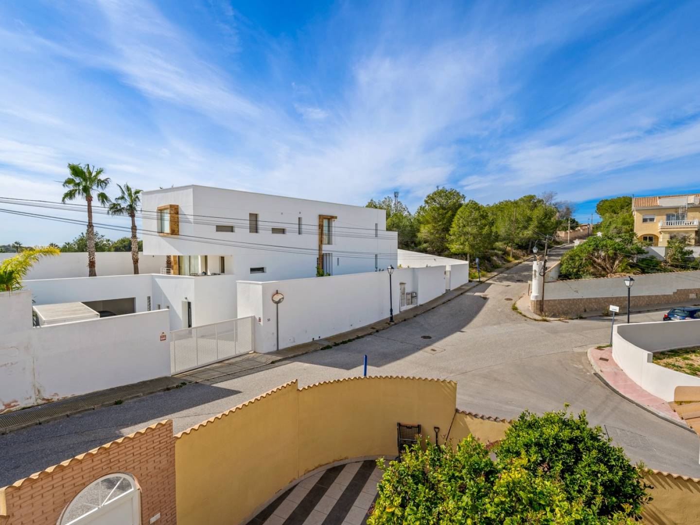 Deze exclusieve vrijstaande villa ademt meteen sfeer en authenticiteit. De ronde gevelvorm, sierlijke balustrades en elegante boogaccenten geven de woning een typisch mediterraan karakter dat meteen opvalt. De warme gevelkleur in combinatie met de natuurstenen details zorgt voor een charmante uitstraling. Bij aankomst word je verwelkomd door een gezellig overdekt terras, een heerlijke plek om het hele jaar door te genieten van het buitenleven. De woning beschikt over lichtrijke leefruimtes en mooie raampartijen met decoratieve afwerking die zorgen voor een aangename natuurlijke lichtinval. De verschillende terrassen, waaronder een ruim bovenliggend zonneterras, bieden op elk moment van de dag een fijne plek in de zon of schaduw. De onderhoudsvriendelijke tuin met kunstgras creëert een groene, verzorgde sfeer zonder veel onderhoud, waardoor je volop kan ontspannen en genieten van het Spaanse klimaat. De aanwezige jacuzzi maakt het buitenleven extra comfortabel en uitnodigend. De volledig omheinde buitenruimte garandeert rust en privacy, waardoor deze woning zowel ideaal is als permanente woonst, vakantieverblijf of interessante investering. De woning is structureel in goede staat, maar vraagt hier en daar wat liefde en een hedendaagse update om haar volledige potentieel volledig te benutten. Met enkele opfrissingswerken kan je deze karaktervolle villa omtoveren tot een echte parel onder de zon. Dit is een unieke kans om eigenaar te worden van een charmante villa met karakter, exclusief bij ons in verkoop.
