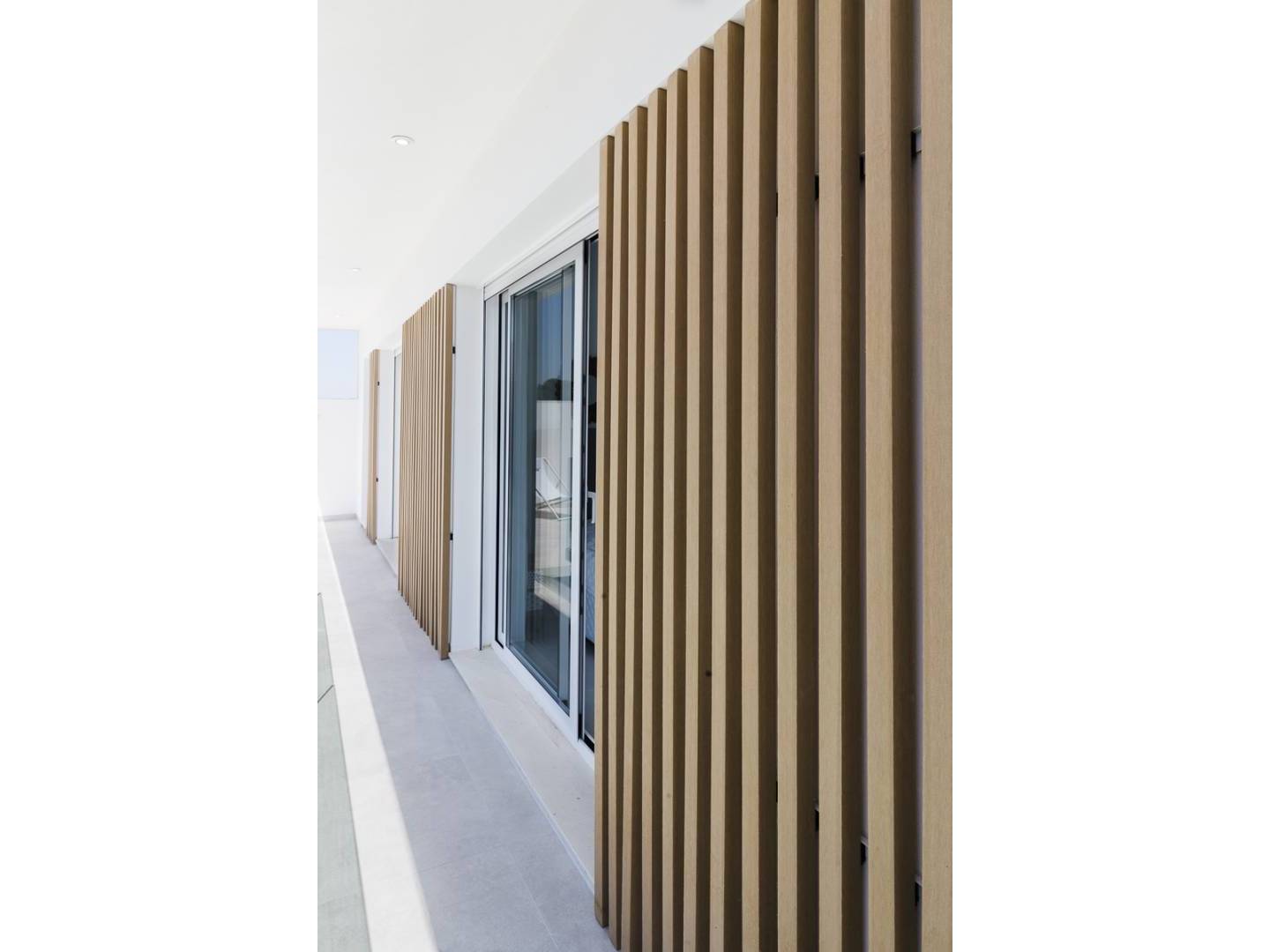 De buitenruimtes van deze vrijstaande woningen zijn een ware oase van rust. Elke woning heeft een privé tuin, ideaal om te genieten van momenten in de buitenlucht in een natuurlijke omgeving. Het terras biedt extra ruimte om te ontspannen of te delen met vrienden en familie. Bovendien zijn de woningen uitgerust met een privézwembad, perfect om af te koelen tijdens de warme zomerdagen. Het solarium is een ander aantrekkelijk kenmerk, dat een exclusieve ruimte biedt om te zonnebaden en te genieten van het uitzicht op de omgeving.