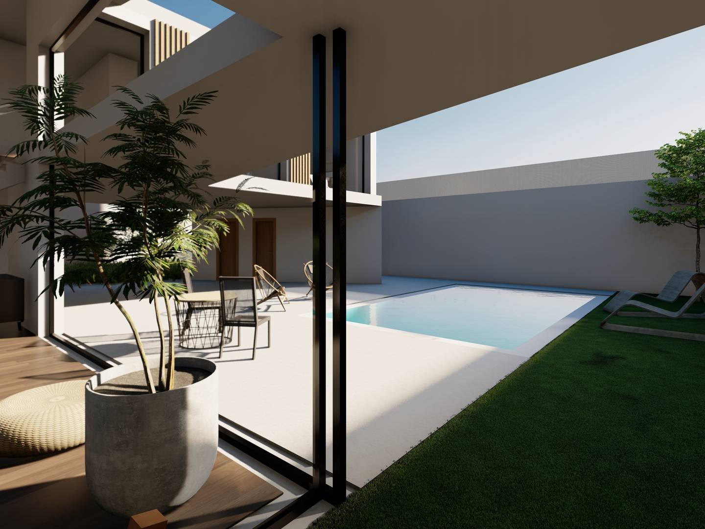 Het exterieurontwerp van deze vrijstaande woningen is indrukwekkend, met kenmerken die een ongeëvenaarde buitenlevenervaring garanderen. Elke woning heeft een privétuin, perfect om te genieten van het mediterrane klimaat. Bovendien bieden de terrassen extra ruimte om te ontspannen of gasten te vermaken. De toevoeging van een privézwembad in elke woning voegt een vleugje luxe toe, waardoor u kunt genieten van verfrissende duiken in het comfort van uw eigen huis.