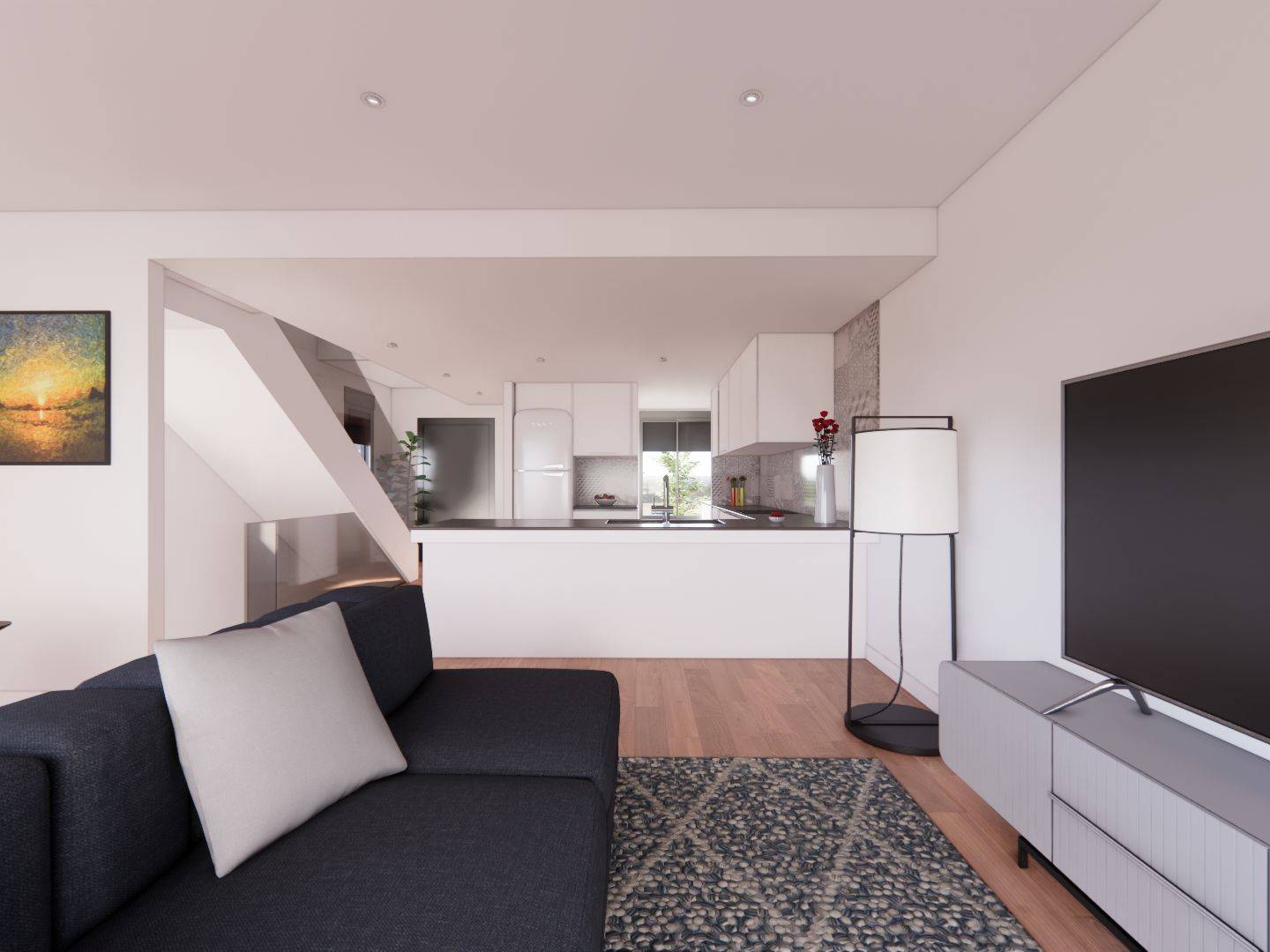 Binnen zijn de woningen ontworpen om comfort en functionaliteit te maximaliseren. Met twee slaapkamers en twee badkamers biedt elke twee-onder-een-kapwoning voldoende ruimte voor gezinnen of koppels. Elektrische rolluiken en inbouwkasten zijn standaardkenmerken die een vleugje moderniteit en praktisch nut toevoegen. De video-intercom zorgt voor een extra niveau van veiligheid en gemak voor de bewoners.