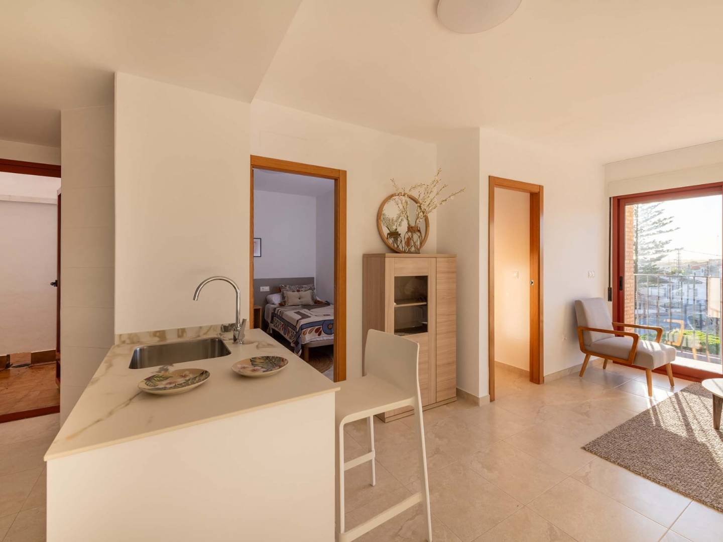 De exterieurs van de appartementen in Jerónimo en Avileses zijn ontworpen om optimaal te genieten van het mediterrane klimaat. Elke eenheid beschikt over een privéterras, wat een perfecte ruimte biedt om buiten te ontspannen. De mogelijkheid om een optionele garage toe te voegen, verhoogt het comfortniveau, waardoor bewoners directe en veilige toegang tot hun voertuigen hebben. De ligging van het wooncomplex in een rustige omgeving zorgt ervoor dat de exterieurs een toevluchtsoord van rust en privacy zijn, ideaal voor het genieten van vrije momenten buiten.