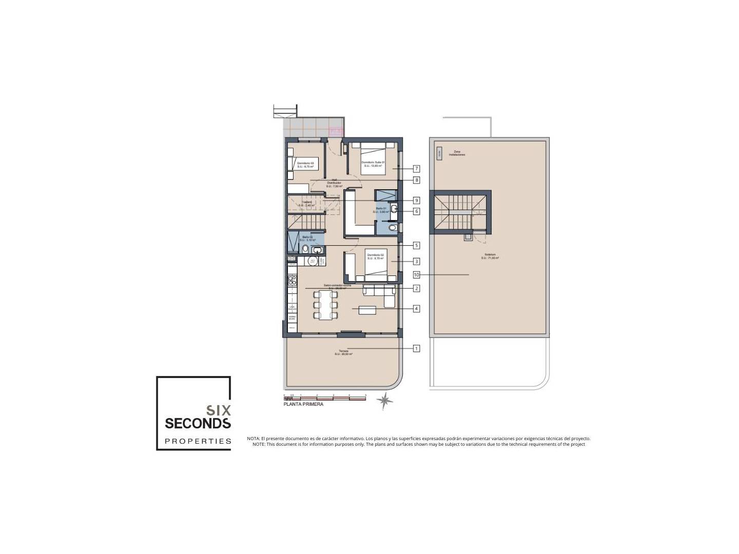 De bungalows kenmerken zich door een doordacht interieurontwerp, waarin comfort en stijl perfect gecombineerd worden. Elke unit heeft drie slaapkamers en twee badkamers en is volledig uitgerust om aan de behoeften van een modern gezin te voldoen. Onderhoudsvriendelijke porseleinen tegels voegen een vleugje elegantie toe aan de kamers. De volledig uitgeruste keuken met alle benodigde apparatuur maakt het dagelijks leven vanaf de eerste dag gemakkelijker. Ingebouwde kledingkasten in de slaapkamers bieden voldoende opbergruimte en de reeds aanwezige airconditioning zorgt voor een aangename temperatuur tijdens de warmere maanden. De indeling is ontworpen voor maximale functionaliteit en optimaal ruimtegebruik.