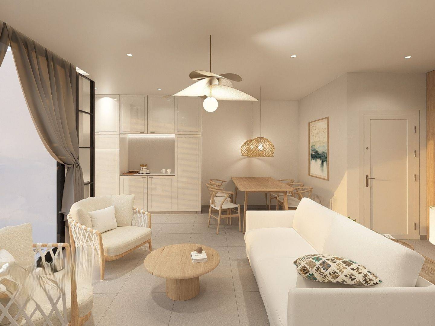 Het interieur van de woningen is ontworpen om comfort en stijl te bieden. De appartementen, begane grond en penthouses hebben 2 of 3 slaapkamers en 2 badkamers, aangepast aan verschillende gezinsbehoeften. Ingebouwde kasten bieden veel opbergruimte, terwijl geïntegreerde apparaten zorgen voor een moderne en efficiënte leefervaring. De vloer van porseleinen tegels voegt een vleugje elegantie toe en vergemakkelijkt het dagelijkse onderhoud. Bovendien verhoogt de video-intercom de veiligheid en gemoedsrust van de bewoners.
