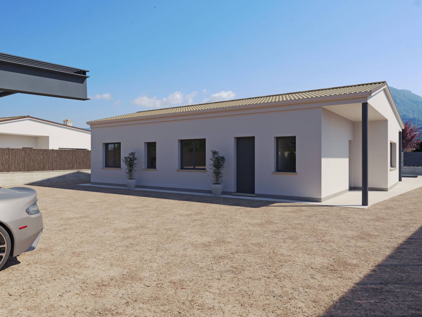 De woningen beschikken over ruime terrassen en privétuinen, perfect om te genieten van de buitenlucht en de natuurlijke omgeving van Penáguila. Daarnaast is er de optie om een privézwembad toe te voegen, wat een vleugje luxe en exclusiviteit aan elke woning toevoegt. Geïntegreerde pergola's bieden een schaduwrijke ruimte ideaal om te ontspannen of voor buitenbijeenkomsten, terwijl de gemeenschappelijke tuinen de omgeving aanvullen en extra ruimte bieden voor recreatie en verbinding met de natuur.