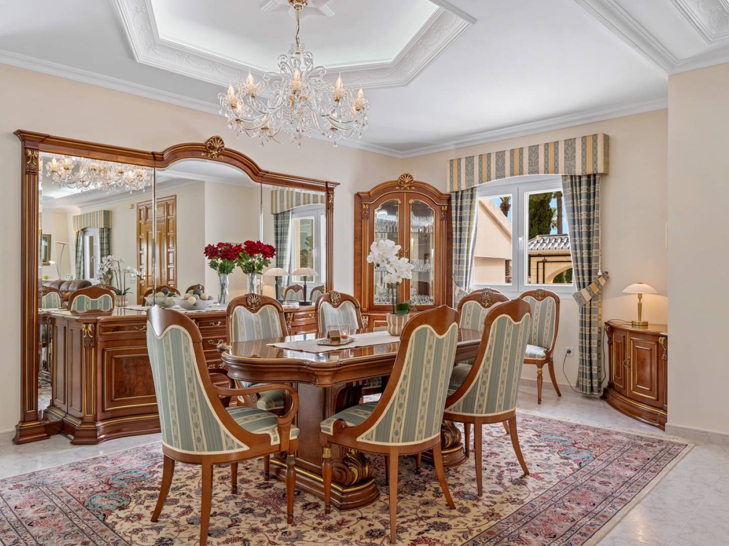 Grote luxe villa met 4 slaapkamers in Ciudad Quesada. De villa is verdeeld over 3 niveaus en heeft in totaal vier slaapkamers en zes badkamers. Op de begane grond vindt u één slaapkamer, één badkamer, een ruime woon- en eetkamer, een keuken met extra eetruimte en een glazen terras dat als extra woonkamer dient. In de woonkamer bevindt zich een mooie open haard. Vanuit de keuken en het glazen terras heeft u directe toegang tot de tuin. Op de eerste verdieping bevinden zich twee slaapkamers en twee badkamers, waarvan één en-suite bij de hoofdslaapkamer. Vanuit de slaapkamers heeft u toegang tot een terras met uitzicht op het zwembad. Op de benedenverdieping bevindt zich een grote open ruimte die wordt gebruikt als woonkamer. Hier vindt u ook een slaapkamer en twee badkamers (doucheruimtes zonder toilet), waarvan één en-suite. De villa is uitgerust met airconditioning, elektrische rolluiken, dubbele beglazing en een alarmsysteem. BuitenruimteDe villa staat op een perceel van 1.058 m². Hier vindt u een groot zwembad (125 m²) dat onlangs is gerenoveerd en veel ruimte rondom het zwembad voor zitgedeeltes. Daarnaast is er een complete buitenbadkamer, een garage met een bijkeuken, extra parkeergelegenheid op het perceel en een grote houten berging. Zowel de garagedeur als de toegangspoort voor de parkeerplaats zijn automatisch. De prachtige tuin is mooi aangelegd en gemakkelijk te onderhouden. De villa ligt op korte loopafstand van diverse restaurants en cafés.