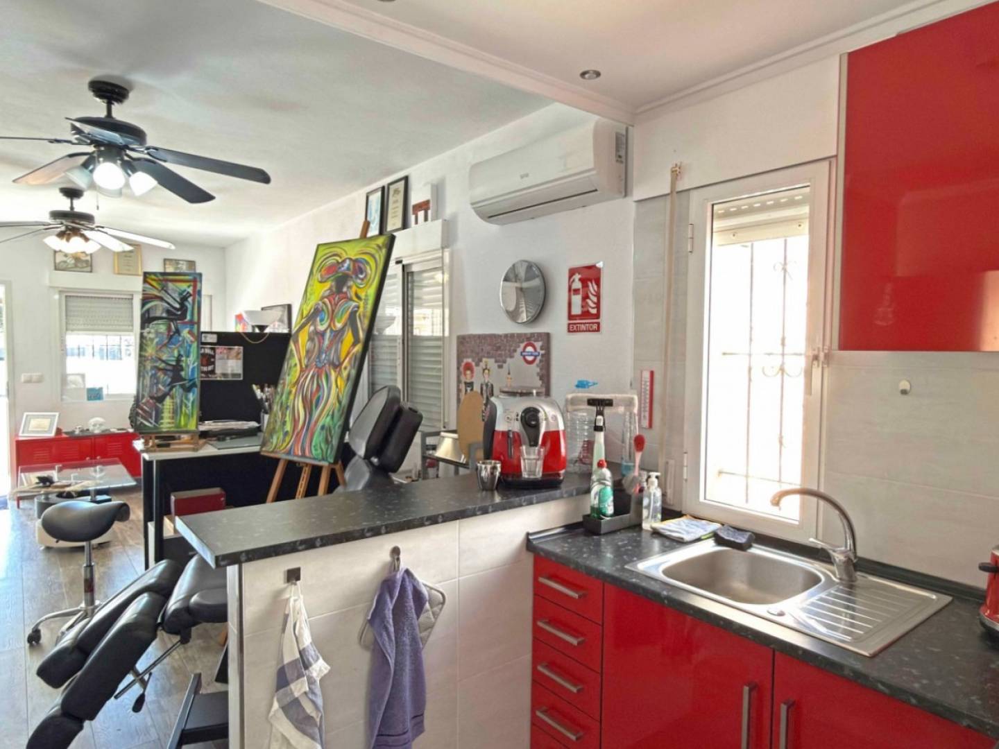 Gelegen in het hart van La Zenia biedt deze prachtig gerenoveerde bungalow een unieke kans om een veelzijdige woning te kopen op loopafstand van zowel het strand als Zenia Boulevard. De woning is recent volledig gerenoveerd, inclusief nieuwe vloeren, moderne ramen, een vernieuwde keuken en een stijlvolle badkamer, wat zorgt voor een lichte en moderne woonomgeving. De bungalow beschikt over 2 slaapkamers en 1 badkamer, allemaal verdeeld over één verdieping, wat zorgt voor comfortabel wonen. Buiten vindt u een terras op de begane grond op het zuiden met privéparkeerplaats, perfect om het hele jaar door van het mediterrane klimaat te genieten. De woning beschikt ook over een overdekte veranda en een privé dakterras, wat extra ruimte biedt om te ontspannen of gasten te ontvangen. Momenteel wordt de woning gebruikt als tattoostudio, maar deze kan eenvoudig weer worden omgebouwd tot een woonhuis met minimale of geen aanpassingen, wat het een interessante kans maakt voor zowel particuliere kopers als investeerders. Dankzij de uitstekende ligging in La Zenia, dicht bij stranden, restaurants, winkels en alle voorzieningen, is dit een ideale woning als vakantiehuis, permanente woning of zelfs als zakelijke mogelijkheid aan de Costa Blanca.