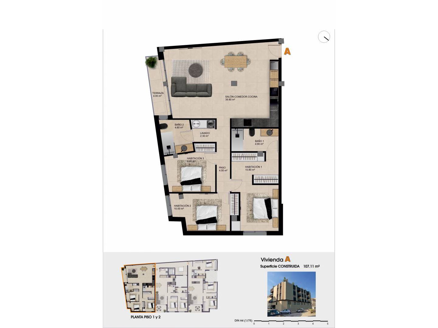 De woningen zijn uitgerust met porseleinen tegelvloeren, die duurzaamheid en een elegante afwerking bieden. Het comfort is gegarandeerd met de voorinstallatie van airconditioning en elektrische rolluiken, die de controle over de binnenomgeving vergemakkelijken. De inbegrepen apparaten en ingebouwde kasten optimaliseren de ruimte en functionaliteit van elke woning. Bovendien voegt de video-intercom een extra niveau van veiligheid en gemak toe. De indelingen variëren van één tot drie slaapkamers en één of twee badkamers, aangepast aan verschillende levensstijlen en gezinsbehoeften.