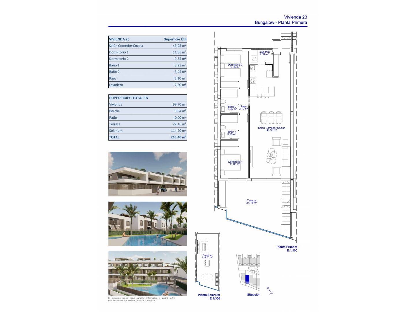 Gelegen in de charmante gemeente Pilar de la Horadada, biedt deze residentie een exclusieve selectie van 10 bungalows. Ontworpen voor degenen die op zoek zijn naar een comfortabele en moderne levensstijl, zijn de bungalows beschikbaar in configuraties van twee en drie slaapkamers, allemaal met twee badkamers. De locatie is ideaal voor degenen die willen genieten van de rust zonder de nabijheid van de zee op te geven, die slechts 3 km verderop ligt. Bovendien ligt de dichtstbijzijnde luchthaven op 45 km afstand, wat de toegang vergemakkelijkt voor frequente reizigers.