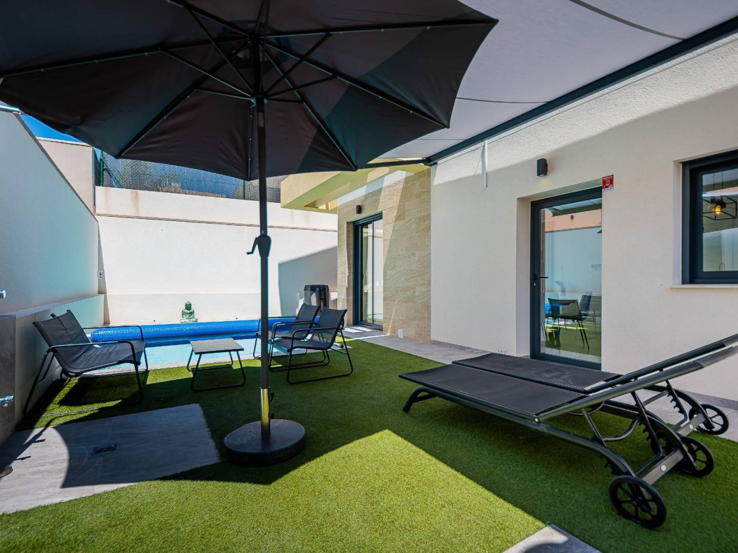 Ontdek deze prachtige, moderne vrijstaande villa , slechts drie jaar geleden gebouwd en gelegen in een rustige woonwijk op slechts enkele minuten van Los Montesinos aan de Costa Blanca . Deze woning combineert elegantie, comfort en een hoge energie-efficiëntie , waardoor het ideaal is als hoofdverblijf of investering. De villa beschikt over drie ruime slaapkamers en twee en-suite badkamers, elk met een eigen ingang , ontworpen voor maximale privacy en functionaliteit . Beide badkamers zijn voorzien van vloerverwarming , wat het hele jaar door zorgt voor optimaal comfort. De spectaculaire woonkamer, met zijn hoge plafonds en grote ramen, baadt in natuurlijk licht en creëert een elegante en uitnodigende sfeer die naadloos overgaat in de buitenruimte. De moderne, volledig uitgeruste keuken maakt indruk met zijn design en functionaliteit, perfect voor het dagelijks leven en het ontvangen van gasten. Boven biedt een groot privéterras de ideale plek om het hele jaar door te genieten van het mediterrane klimaat . Buiten beschikt de woning over een privé, verwarmd zoutwaterzwembad , een ingebouwde barbecue in Braziliaanse stijl en een terrein met een oprit en parkeergelegenheid. Vijftien zonnepanelen zorgen bovendien voor een aanzienlijke besparing op het energieverbruik. Deze woning ligt op korte afstand van alle voorzieningen, winkels, restaurants en golfbanen en biedt een unieke kans om een moderne, energiezuinige en direct bewoonbare woning te kopen in een van de meest gewilde gebieden in het zuiden van Alicante.