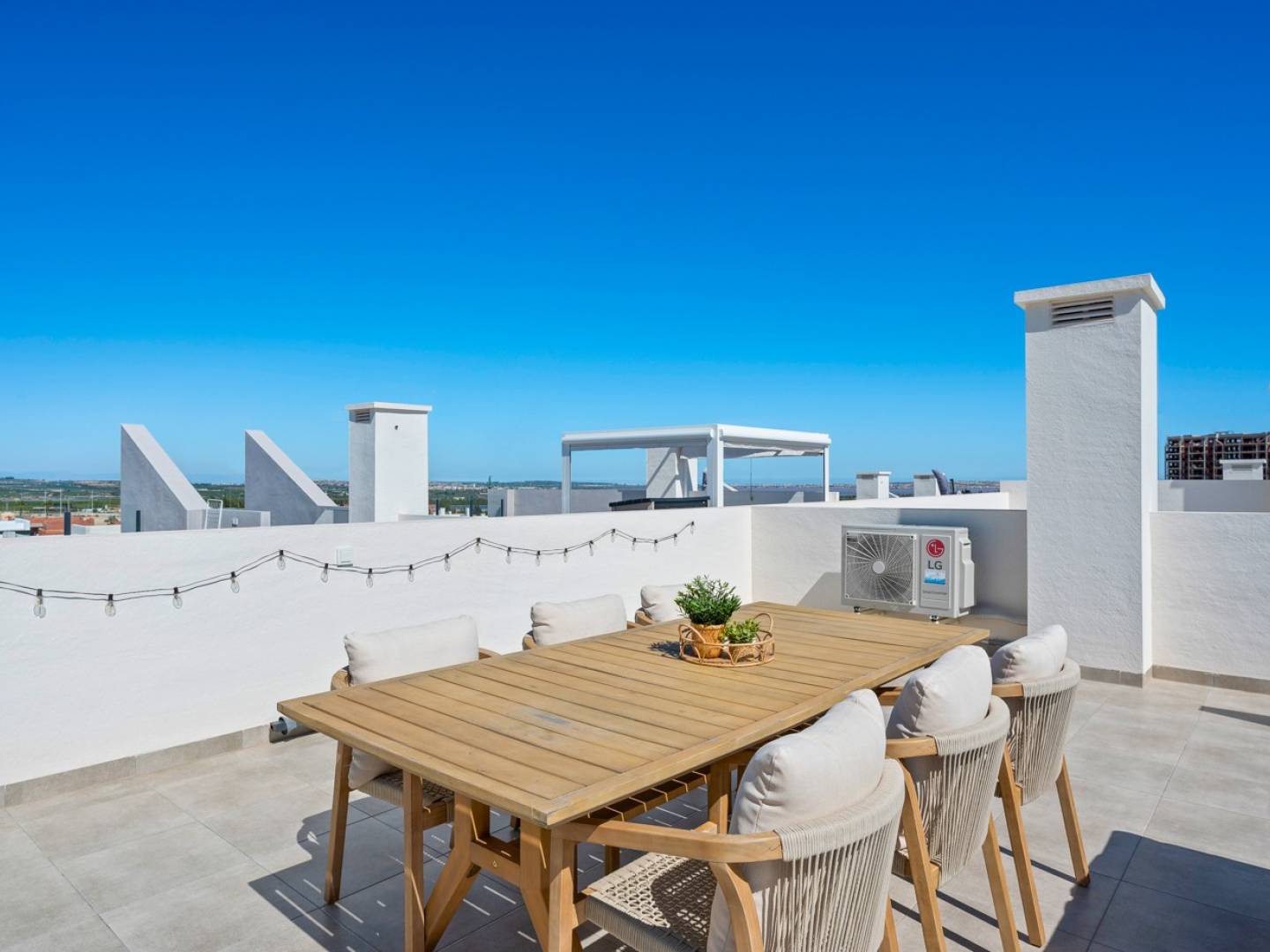 Dit nieuw gebouwde penthouse in San Miguel de Salinas geniet een toplocatie in een klein, privé en gastvrij wooncomplex waar rust, privacy en comfort voorop staan. Het appartement beschikt over twee slaapkamers en twee badkamers en biedt een moderne indeling met een open woon-/eetkamer en keuken , wat zorgt voor een lichte en elegante sfeer – ideaal voor het dagelijks leven. Vanuit de woonkamer heeft u toegang tot een prachtig terras met uitzicht op het gemeenschappelijke zwembad , perfect om het hele jaar door te genieten van het mediterrane klimaat. De woning beschikt tevens over een ruim privésolarium met adembenemend panoramisch uitzicht op de natuurgebieden en het roze zoutmeer – een unieke plek om te ontspannen, te zonnebaden of 's avonds buiten te genieten. Dit op het zuiden georiënteerde appartement wordt volledig gemeubileerd en uitgerust verkocht en is direct te betrekken. Het beveiligde wooncomplex beschikt over een gemeenschappelijk zwembad en een kinderspeelplaats , beide op een aangename schaal ontworpen, wat zorgt voor een rustige en exclusieve omgeving . Dankzij de ideale locatie zijn winkels, restaurants, golfbanen en stranden gemakkelijk bereikbaar, waardoor deze woning de perfecte keuze is als tweede huis, investeringsobject of permanente woning . Een woning die adembenemende uitzichten, kwaliteit, een toplocatie en rust combineert aan de Costa Blanca.