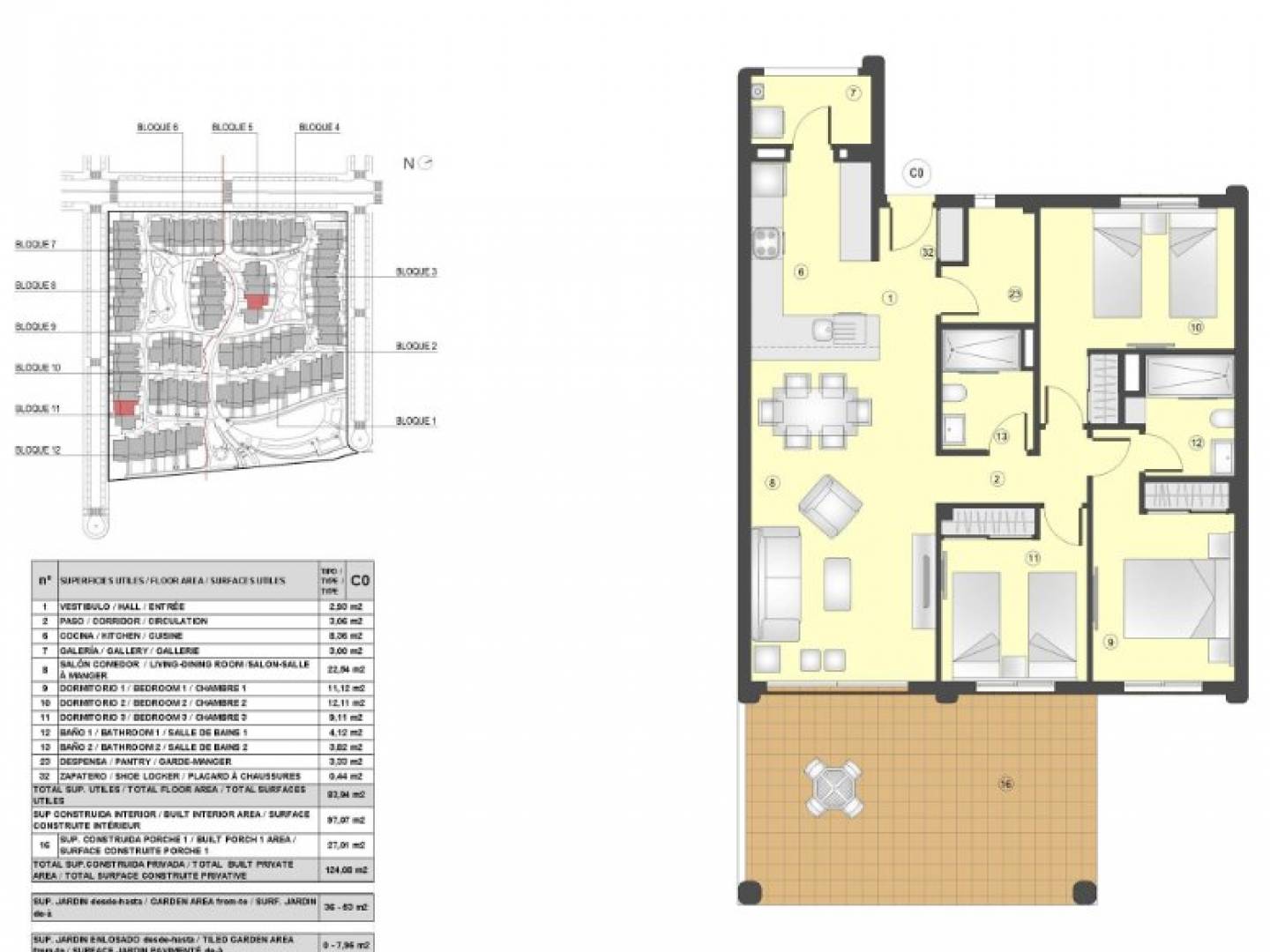 Het interieur van de woningen is zorgvuldig ontworpen om comfort en functionaliteit te bieden. De indelingsopties omvatten bungalows met 2 en 3 slaapkamers, allemaal met 2 badkamers. De afwerkingen omvatten keramische vloeren en vloerverwarming, wat het hele jaar door een gezellige sfeer garandeert. De woningen zijn volledig gemeubileerd en uitgerust met moderne apparaten, airconditioning en elektrische rolluiken. Ingebouwde kasten bieden efficiënte opslag, terwijl de pre-installatie van airconditioning extra comfort verzekert. Bovendien zijn sommige units voorzien van een jacuzzi, wat een extra vleugje luxe biedt.