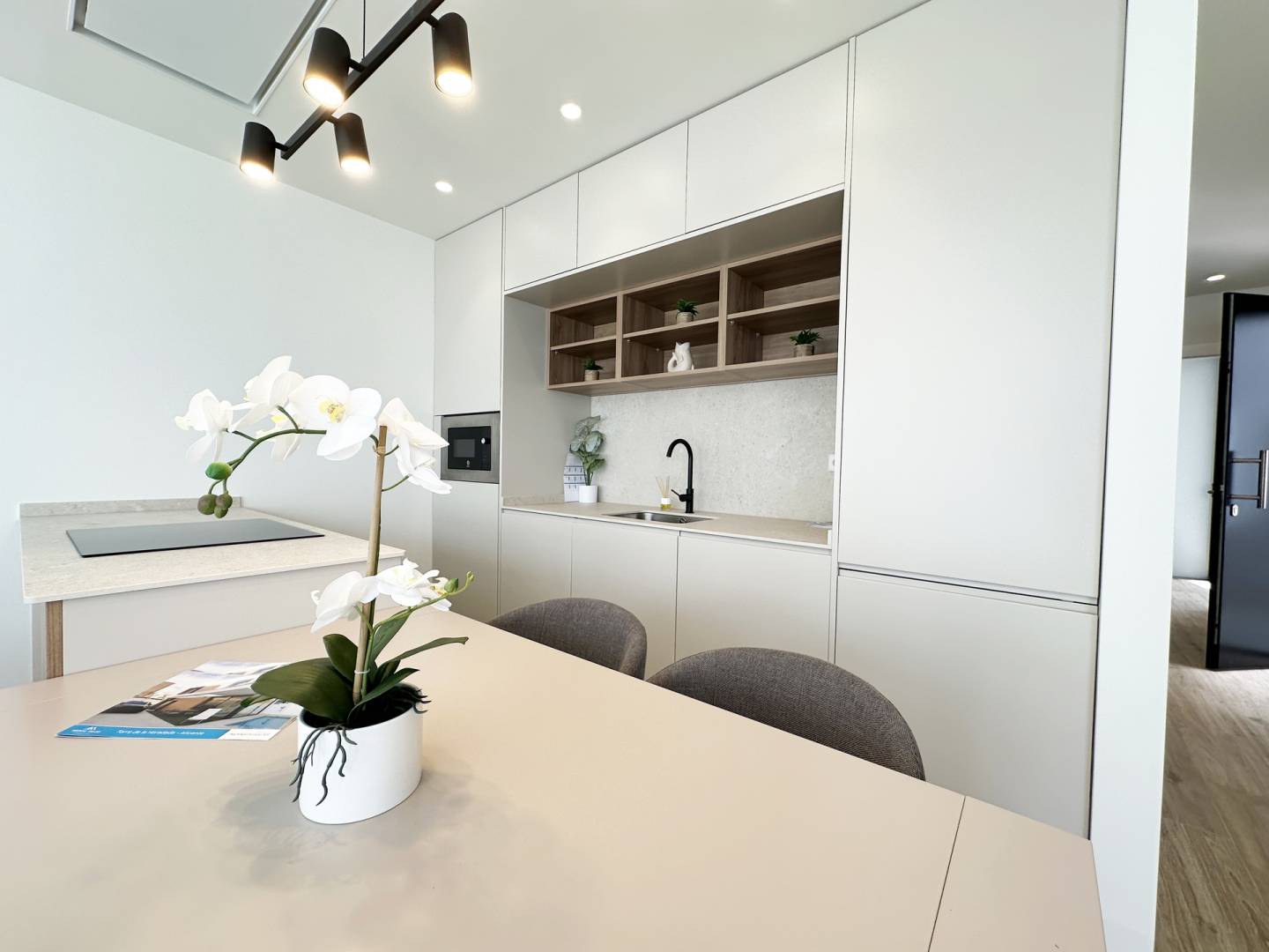 Het interieur van deze onafhankelijke woningen is ontworpen om maximaal comfort en functionaliteit te bieden. Met drie slaapkamers en drie badkamers is elke woning uitgerust met airconditioning en huishoudelijke apparaten, wat het hele jaar door een comfortabele omgeving garandeert. De keramische vloeren geven een moderne uitstraling en zijn gemakkelijk te onderhouden. Elektrische rolluiken en de video-intercom bieden comfort en veiligheid. Ingebouwde kasten bieden veel opbergruimte en optimaliseren het gebruik van de binnenruimte.