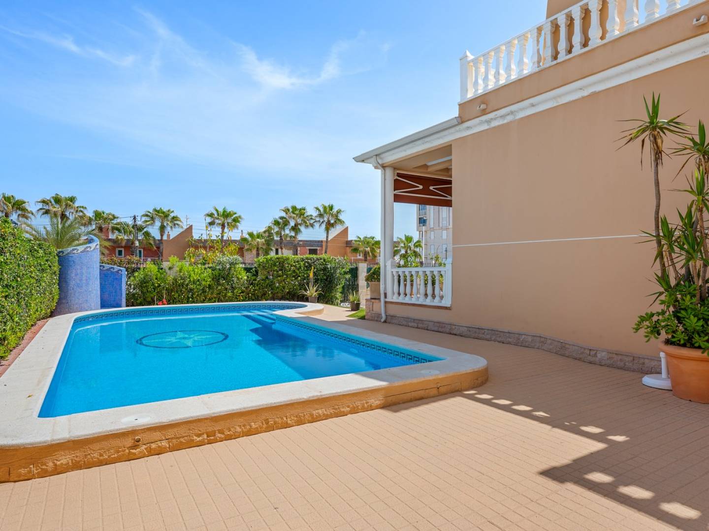 Ontdek deze prachtige luxe villa in Molino Blanco , een van de meest exclusieve woonwijken van Torrevieja aan de Costa Blanca . Gelegen op een ruim perceel van circa 800 m², biedt deze elegante woning een totale woonoppervlakte van 440 m² , verdeeld over twee verdiepingen, plus een afgewerkte kelder die optimaal comfort en privacy garandeert. De villa beschikt over zes tweepersoonsslaapkamers en vijf badkamers – ideaal voor grote gezinnen of om gasten in alle rust te ontvangen. Bijzonder opvallend zijn de ruime en lichte woon- en eetkamers , één op elke verdieping, evenals de grote, aparte keuken met directe toegang tot de tuin, perfect voor het dagelijks leven en om gasten te ontvangen. Buiten beschikt de woning over een prachtig privézwembad, omgeven door een weelderige mediterrane tuin, een ware oase van rust. Een elegante veranda en een magnifieke pergola met barbecue nodigen uit tot onvergetelijke avonden in de buitenlucht. De villa biedt exclusieve voorzieningen zoals centrale verwarming , airconditioning , een alarmsysteem en een onderhoudsservice voor de gemeenschappelijke ruimtes, inclusief tuinonderhoud. Deze exclusieve woning combineert ruimte, privacy, elegantie en een toplocatie vlakbij zee, waardoor het een unieke kans is voor iedereen die op zoek is naar een luxe residentie aan de Costa Blanca.